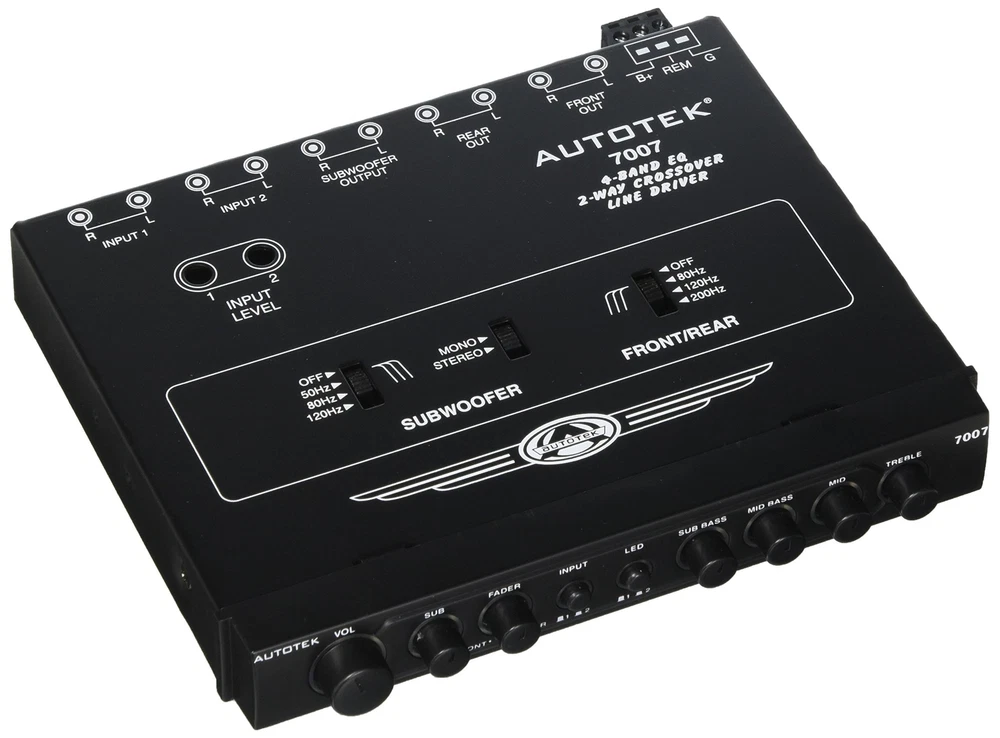 Autotek 7007 Multiple Source Signal Processor (Black) – .5 Inch DIN, 2-Way, 4-Band EQ, 9 Volt Line-Driver, 2 Inputs, 3 Outputs, Master Volume Control, Subwoofer Control, Includes Bass Remote Quick Control – The Autotek 7007 features in-dash installation for quick control of master and sub volume allowing equalization adjustments for real-time tuning. (Includes Bass Remote) Fine Tuning – With master volume control, subwoofer control, and a dual amp fader, this processor gives you everything you need to fine tune your vehicle’s sound system experience.