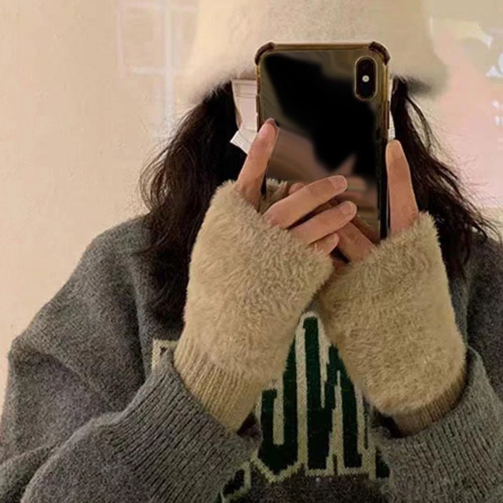 Autumn and winter half-finger flip cover student knitted X7S3 gloves S8S5