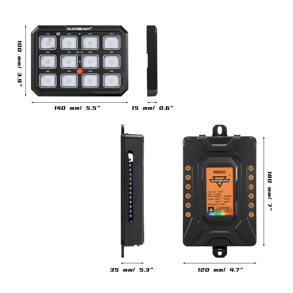 smafay Welcome Description RB120 Series RGB switch panel is now available! ★Upgraded Functions: ✔ RGB backlit - Unlimited color options match dash lighting and vehicle ✔ 3 mode setting - Toggle/ Momentary/ Pulsed ✔Manual backlit off - Turn off the backlit when it's daytime or when it's not necessary ✔ DIY switch panel - Use the provided 60pcs switch labels to indicate what’s connected to that switch. ✔ Waterproof cover - Protect the switch panel from rain & snow weather or water Specification: Voltage Input: DC 12-24V Max Current: 120A Rated Voltage: 12V 20A / 24V 10A Max Power: 1200W/12V, 2400W/24V Waterproof Rating: IP65 Operating Temperature: -40°C ~105℃/-40℉~221℉ Features: ▶RB120 RGB Switch Panel 3 Modes setting. Each switch has 3 kinds of light status, different indicator status represents different working modes. ● RED - Toggle, Constant light mode (Great for things like fog lights or driving. ● BLUE - Momentary, Press & hold the button to turn on, then release the button to turn off, just like pressing the horn button. ● GREEN - Pulsed, Flash mode. Press the switch once and the device will flash on/flash off, continuing until the switch is pressed again. RGB backlit color. Adjust backlit color and brightness to match your vehicle. Backlit brightness automatic dimmable . Automatic adjustment according to the brightness variation of the environment. Customize your own switch panel with 120 universal stickers. Use the provided switch labels to indicate what’s connected to that switch. Universal fitment . Widely use for Truck, Boat, Car, Bus, Off-road, Powersports, Marine, ATV, UTV, SUV, Side by Side, SxS, Heavy-duty machines, etc. Waterproof IP65, high sensitivity, stability and strong anti-interference ability. Easy Installation . No complicated wiring, no need to cut a big hole in your vehicle. Plug & play wiring harness can connect the LED lights or accessories easily. With 2 types of mounting brackets , you can mount the panel in the best location for your vehicle, such as the dash panel, center console, overhead sunglasses holder, etc. ▶3.94FT Extension Cable There is a 4-pin aviation video cable, a cable for transmitting video and power. It is widely used in truck / Trailer/Bus / Motorhome / long-distance Parking Aid, and connected with vehicle monitoring CCTV system. Compatible products: professional CCTV / monitor 4-pin connector monitor, rearview camera, DVD player TV box. Power input DC 12V - DC 24V. Specially thick hard wire provides super protection against EMI interference and RF interference such as automotive circuit interference. ▶20FT Extension Cable Auxbeam Extension Cable. This 20-feet, 4-pin wiring harness extension features a Play and Plug design, allowing for effortless installation of extension wires. With ample length, it provides sufficient reach to extend your wiring harness to the desired location for installation of the controller box Premium Made. Auxbeam switch panel extension boasts an especially thick hard wire, which not only enhances its strength and longevity, but also provides superior protection against EMI and RF interference, including automotive circuit interference Wide Application. The Auxbeam cable extension has a broad range of applications and can be utilized to extend control over any vehicle electrical appliance for your modification needs. This includes, but is not limited to UTVs, trucks, trailers, buses, motorhomes, and long-distance parking aid sectors No Splicing. This extender eliminates the need for splicing of new wires, as it allows for easy extension of existing wires. It is compatible with power input ranging from DC 12V to DC 24V, and features a professional CCTV/monitor 4-pin connector that can be used to connect a rearview camera, DVD player, TV box, or other similar devices ▶7FT Electric Wire 10㎡/7AWG red and black large wire with 6M and 8M tinned copper wire lugs. Copper cable lugs are made of solid copper with tin plated caps for corrosion protection. The package comes with red and black cables with each cable end sealed with heat shrink tubing for heat insulation. Package Included: 1 x Switch Panel (all necessary hardware and wiring harness is included) 1 x Installation Instructions Product Display Payment & Shipping We accept Ebay Payment. Payment should be completed within 7 days of auction closing, or Unpaid Dispute will be filed . If you can not pay in time, please contact us. All items will be shipped out within 48 hours after your payment is verified. Return & Replacement 1. Our items come with a Three-month or One-year warranty. We shall pay much attention to your order and will do our best to solve any problems in a professional business manner. 2. If you are dissatisfied with our items, please contact us for return address within 30 days upon receipt of the delivery. The item must be returned with the original package for refund or exchange. Before you return, please check twice to confirm the item not work and contact our customer service representative, let us know the detailed problem or send us some pictures for confirmation. Feedback 1. Dear buyers, we appreciate your business, if you are satisfied with our service, please leave us a positive feedback and 5 scores DSR . Your recognition will make us more confident to develop business and serve you better. 2. Our goal is to make sure you are a happy buyer and pleasant shopping with us. If you have any questions, please contact us for a resolution firstly . Our working time is (GMT+8) Monday to Friday, 9:00-18:00. We will respond your email as soon as we can . 3. We understand the concerns and frustrations you might have, and will do our best to resolve the issues. Please give us the opportunity to resolve any problem. Thank you for visiting my store!