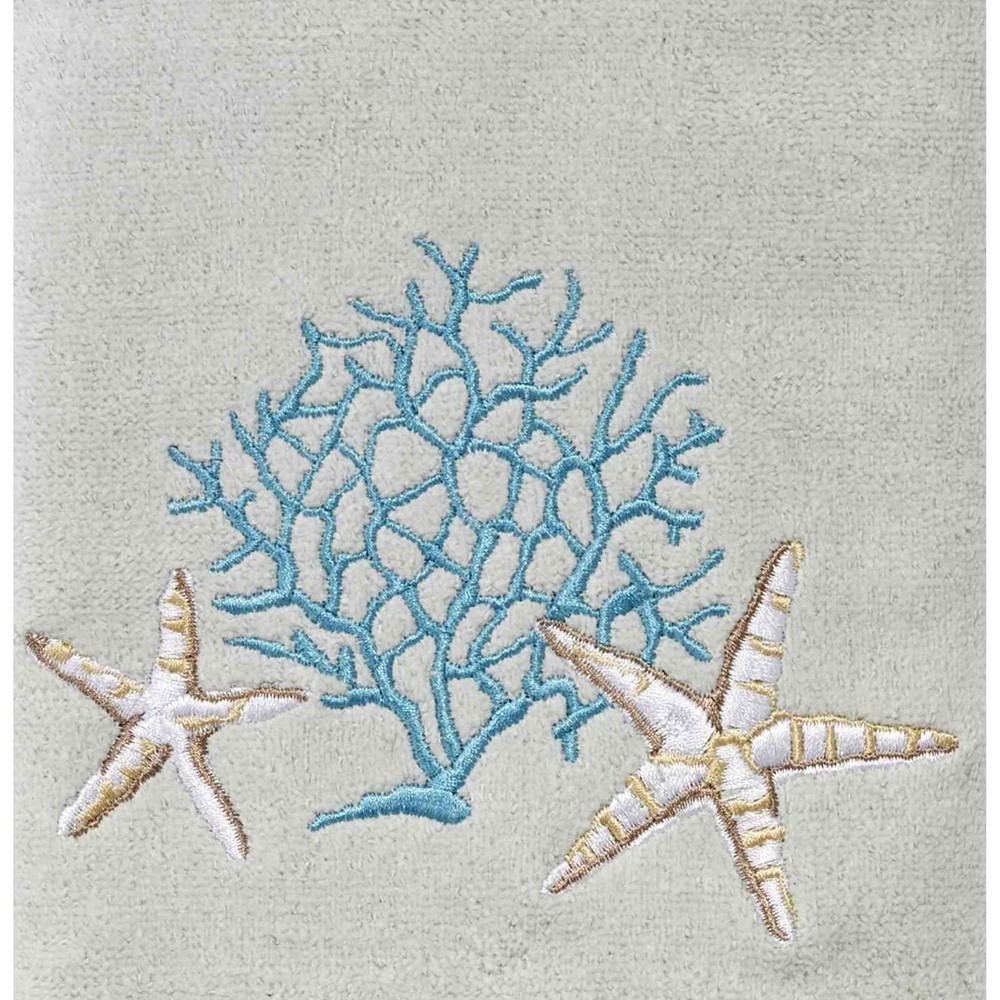 The Avanti Beachcomber Hand Towel features a beautifully embroidered seascape with starfish and coral in shades of ivory, white, aqua and teal. Finished with a coordinating fabric border with whip-stitch detail. 16" x 30" seafoam velour 100% cotton (excl of embellishment) towel. Free Shipping Over $49.99* Details Avanti Linens Beachcomber Hand Towel - Hand Towel Product Description: The Avanti Beachcomber Hand Towel features a beautifully embroidered seascape with starfish and coral in shades of ivory, white, aqua and teal. Finished with a coordinating fabric border with whip-stitch detail. 16" x 30" seafoam velour 100% cotton (excl of embellishment) towel.