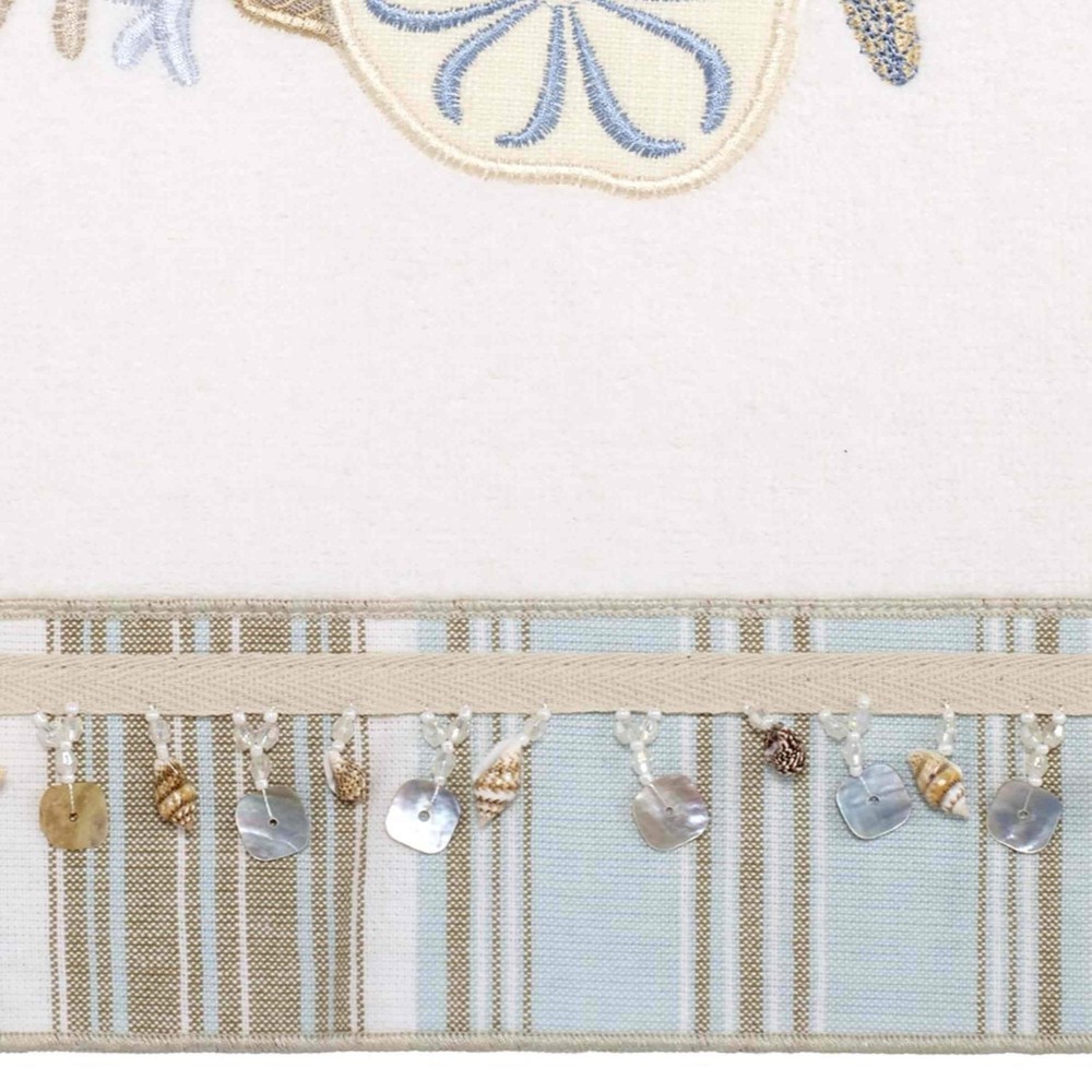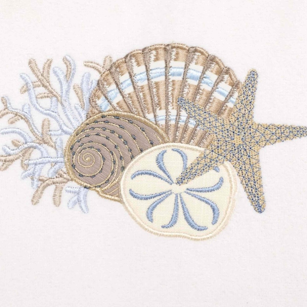The Avanti By the Sea White Decorative Embellished Bath Towel is embroidered with a variety of shells, starfish and coral in blues and beiges. Finished with a coordinating striped cotton border with real shell trim. The 100% cotton white velour towel measures 27" x 50" with a super soft feel. Free Shipping Over $49.99* Details Avanti Linens By The Sea Bath Towel - Bath Towel Product Description: The Avanti By the Sea White Decorative Embellished Bath Towel is embroidered with a variety of shells, starfish and coral in blues and beiges. Finished with a coordinating striped cotton border with real shell trim. The 100% cotton white velour towel measures 27" x 50" with a super soft feel.