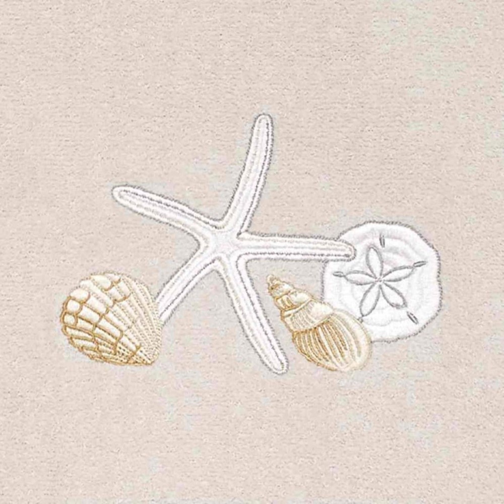 The Avanti Seaglass Decorative Bath Towel features an embroidered white starfish with a fan shell, spiral shell and sand dollar with an aqua fabric trim with diamond stitching. The beige towel is 27" x 50" 100% cotton velour. Coordinating accessories, shower curtain, rug, towels also available. Free Shipping Over $49.99* Details Avanti Seaglass Bath Towel - Bath Towel Product Description: The Avanti Seaglass Decorative Bath Towel features an embroidered white starfish with a fan shell, spiral shell and sand dollar with an aqua fabric trim with diamond stitching. The beige towel is 27" x 50" 100% cotton velour. Coordinating accessories, shower curtain, rug, towels also available.