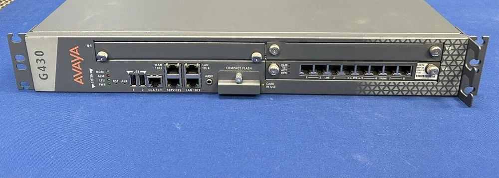 Avaya G430 Media Gateway Chassis w/ Rackmount Ears & Power Adapter 700476393 TSW# 836 ***30-day warranty - Guaranteed to work or your money back. This item has been tested to be in good working condition and may show signs of use and cosmetic blemishes, examples of which are: scratches, scuffs, dents - all of which do not affect the usability of the item .*** * What is included in this listing will be shown in the pictures. If you do not see an accessory in the pictures and it is not specifically listed as included in the condition description or the listing description, the accessory is not included. *