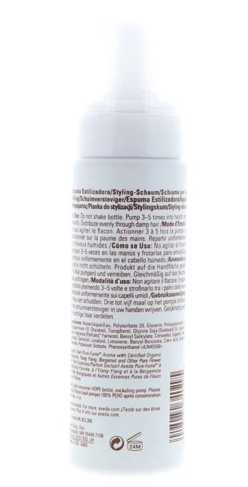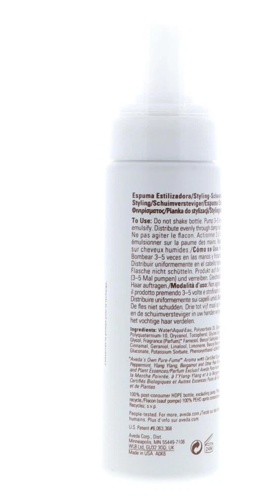 Aveda Phomollient Styling foam with organic honey Adds body, weightless volume and shine with the patented light to medium holdr For fine to medium hair