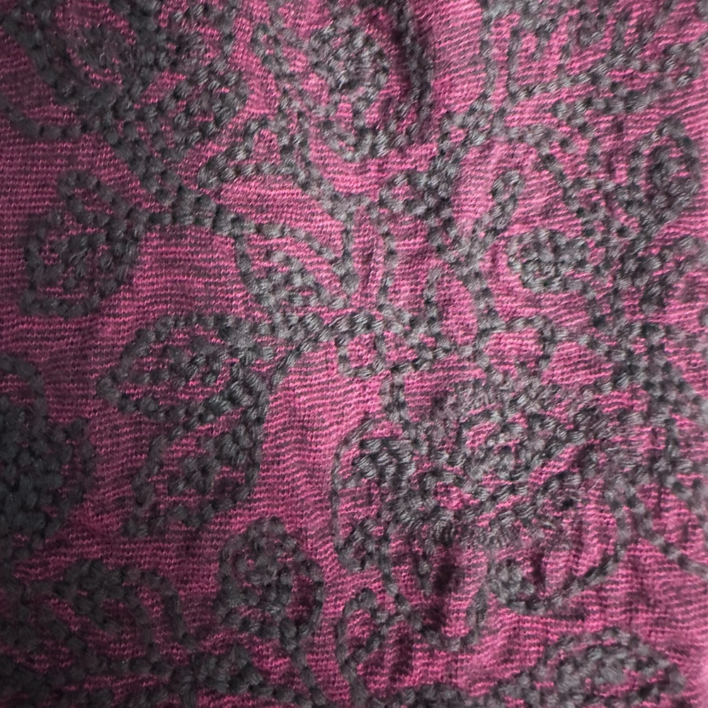 Aventura Clothing Addison Dress * Condition: Good pre-owned condition. There are a few small white spots on the front bottom left and back right shoulder; and a small hole in the upper back. Please see photos. * Size: Large * All measurements are approximate and taken lying flat. Please see photos as well. * Chest: 20” pit to pit * Length: 35” from shoulder to hem * Color: Magenta Purple * Material: 48% Organic Cotton, 47% Tencel Lyocell, 5% Spandex * Stretchy slub jersey knit fabric * 1/4 zip mock neck collar * Side seam integrated pockets * Raglan sleeves with embroidery detail * Thumb holes * Style: P83309 * Machine Washable All of my items are stored in a smoke-free, dog-friendly home.