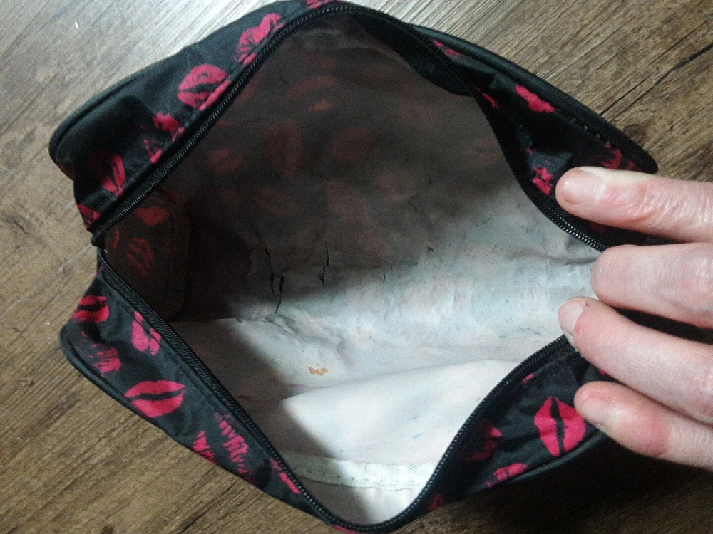 Vintage Avon Makeup bag with lip kisses and.. pre-owned and used. in good condition and.. clean from healthy no smoking no pet house and.. accept any offer.. alittle worn in corner however.. great for make up style and.. fashion!