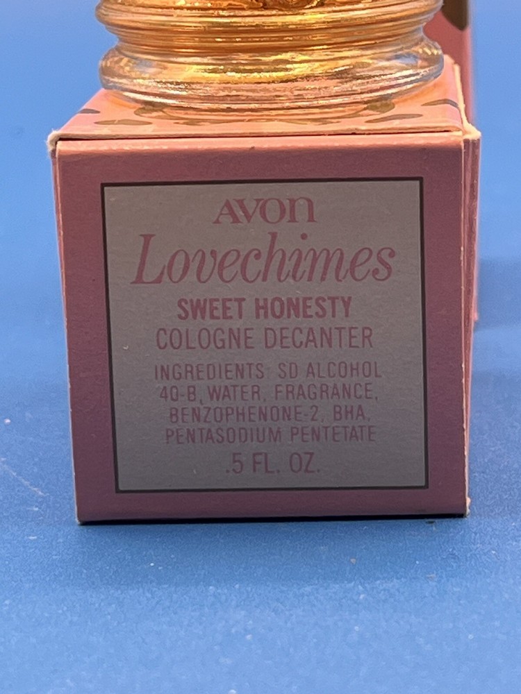 This lot includes two Avon Lovechimes Sweet Honesty .5 fl oz Cologne Decanters Splash, perfect for collectors or those who appreciate unique and decorative items. The decanters are designed in a splash style and feature the Avon brand, making them a great addition to any collection. The units are in fl oz, making them easy to measure and display. These bottles are ideal for use as decorative pieces or for storing small items. Get your hands on this rare and hard-to-find Avon Lovechimes Sweet Honesty Cologne Decanters Splash set today!