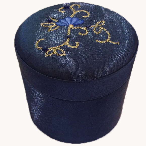New in Original Sealed Package dated 2000. (Now hard to find in this condition) Blue Satin Gift Box features a Blue Flower and Bead Accented Gold Thread Embroidery. Perfect for presenting a special gift or for storing keepsakes. Measures approx 3.25" diameter by 3" tall. Ships Quick from a Smoke Free Home. Combined Shipping Discounts Available. Please use the cart button feature in the listings to shop my store and combine your purchases.
