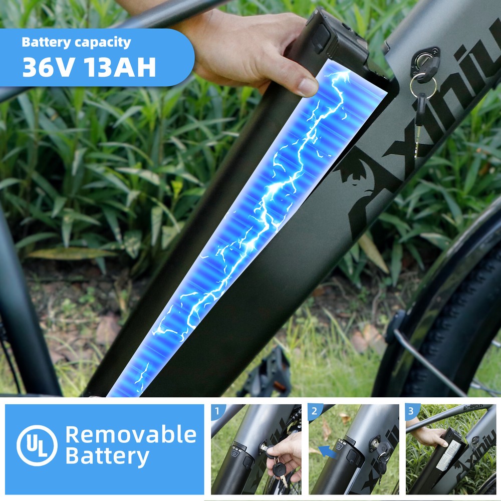 Handlebar Type: Flat Bar Frame Size: 26 in Gear Change Mechanism: Derailleur Gears Model Year: 2024 Tire Type: Tires Item Width: 18.90” waterproof line: 9-core main waterproof line Manufacturer Warranty: 3 Years Motor Power: 750W Max load: 330lbs Item Weight: 61.7294334lbs Model: City Electric Bike Wheel Size: 26 in Custom-Built: No Item Height: 41.73" Motor Type: Rear Hub Motor Material: Aluminum Maximum Range: Up to 40 mi(Assist Mode) gtin13: Does not apply Maximum Speed: 22mph Features: Lights, Display, Fenders, Front Light,Removable Battery Safe standard: passed UL 2850 detection Brand: Axiniu MPN: EG-HL03-W Color: Black/Grey Country/Region of Manufacture: China Frame Number: No Voltage: 36 V Custom Bundle: No Bike Type: E-City Bike UPC: Does not apply Charging Time: 4-6 hours Charger: 42V 2.0A, UL/CE certified, black, US standard Number of Speeds: 7 Speed Department: Unisex Adult Suspension Type: Rear EAN: Does not apply Brake Type: Disc Brake - Mechanical Item Length: 72.05"