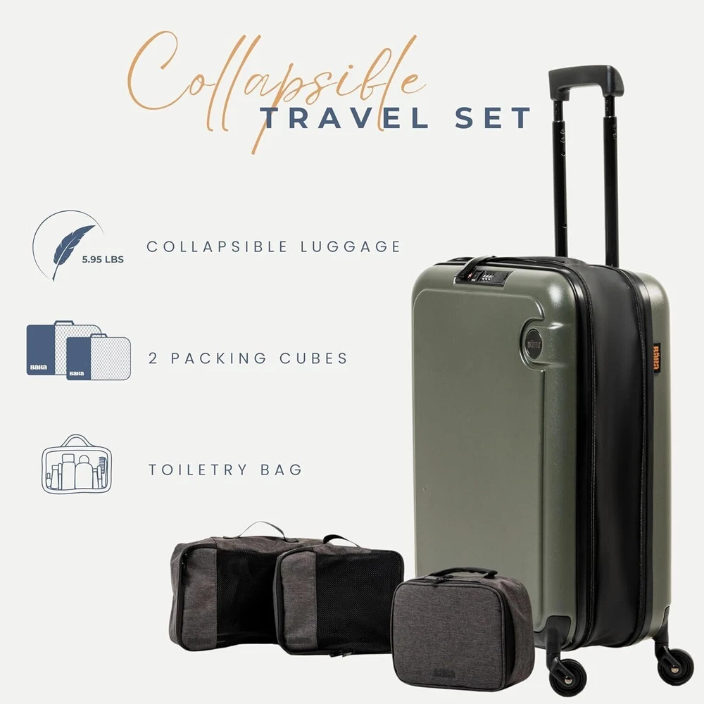 BÄRA Travel Sets - Hardshell Collapsible 20 Inch Carry On Luggage, Packing...