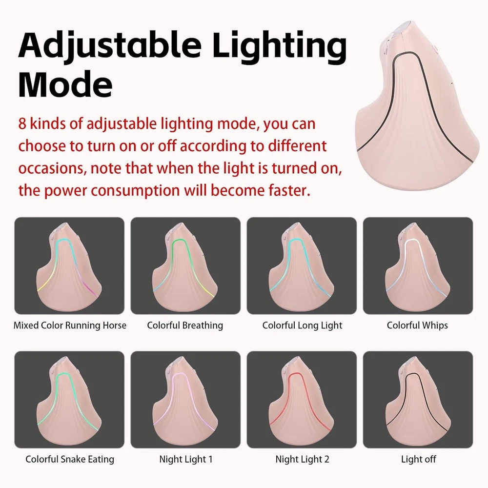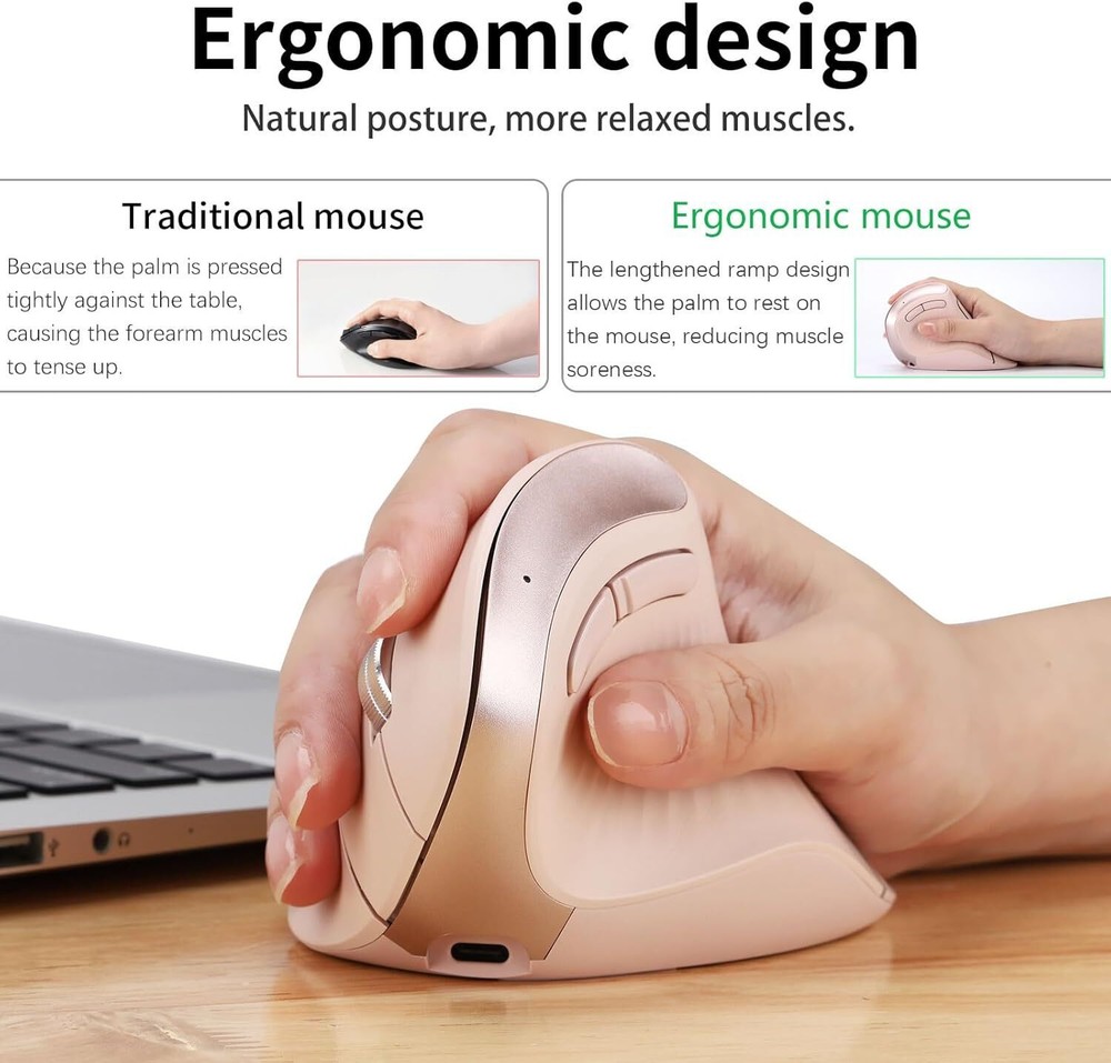 B310 Ergonomic Mouse, Vertical Wireless Mouse, 2.4G USB Receiver and Two Bluetooth, RGB Light, Rechargeable Multi Devices Mouse for Computer, Laptop, iPad, MacBook Pro/Air (Pink) The lengthened "ramp" design is ergonomic, allowing for a more natural grip, reducing the friction between the wrist and the desk, reducing muscle soreness, and avoiding the blackening of the wrist skin due to long-term friction. 8 adjustable light modes, with light adjustment button, Type-C charging port, charge for two hours can be used for 60 days (light-off mode), if you keep the lights on, you need to charge them every 1-2 days. Three wireless connection channels, suitable for multiple devices (2.4G USB receiver, Bluetooth 1, Bluetooth 2), support multi-device switching. All buttons are silent, whether it is working or playing games, it will not disturb others. Support for Desktop, Laptop, MacBook, iPad and Smartphone, compatible with Windows, MacOS, iOS, Android, Linux and Chrome OS. B310 Ergonomic Mouse, Vertical Wireless Mouse, 2.4G USB Receiver and Two Bluetooth, RGB Light, Rechargeable Multi Devices Mouse for Computer, Laptop, iPad, MacBook Pro/Air (Pink) The lengthened "ramp" design is ergonomic, allowing for a more natural grip, reducing the friction between the wrist and the desk, reducing muscle soreness, and avoiding the blackening of the wrist skin due to long-term friction. 8 adjustable light modes, with light adjustment button, Type-C charging port, charge for two hours can be uséd for 60 days (light-off mode), if you keep the lights on, you need to charge them every 1-2 days. Three wireless connection channels, suitable for multiple devices (2.4G USB receiver, Bluetooth 1, Bluetooth 2), support multi-device switching. All buttons are silent, whether it is working or playing games, it will not disturb others. Support for Desktop, Laptop, MacBook, iPad and Smartphone, compatible with Windows, MacOS, iOS, Android, Linux and Chrome OS. × × × × × × × Buy now and save! Shipping info Click the Shipping & Payments tab above the listing description for more info Click the Shipping & Payments tab above the listing description for more info! Additional delivery notes PICK UP OPTION Sorry, our items are NOT available for pick-up. PAYMENT Immediate payment is required upon selecting "Buy It Now" or upon checking out through the cart. We accept payment via U.S. PayPal accounts and all Major Credit Cards, Debit Cards & Google Pay. We are legally required to collect sales tax in those states and localities where we maintain a physical presence (nexus). The applicable amount of sales tax charged to an order will be calculated based on the shipment destination's state and local sales tax laws. Thank you for shopping with us on eBay! Additional Information No additional information at this time Ask seller a question You might also like Jingle all the Way! 4.5" Square Shadow Box Rite Lite 2 pack wooden Dreidel Rite Lite The Dreidel Game Chanukah Painted Wooden Dreidels Set of 4 - Hanukkah Aurora Marius Nutcracker Bear Blue Contact To contact our Customer Service Team, simply click the button here and our Customer Service team will be happy to assist. Ask seller a question © Morning Glory Resale Shipping & Payments Click the Shipping & Payments tab above the listing description for more info Payment Accepted Payment Methods Immediate payment is required upon selecting "Buy It Now" or upon checking out through the cart. We accept payment via U.S. PayPal accounts and all Major Credit Cards, Debit Cards & Google Pay. We are legally required to collect sales tax in those states and localities where we maintain a physical presence (nexus). The applicable amount of sales tax charged to an order will be calculated based on the shipment destination's state and local sales tax laws. Thank you for shopping with us on eBay! Returns Returns are not accepted Seller will pay for return shipping. eBay integration by