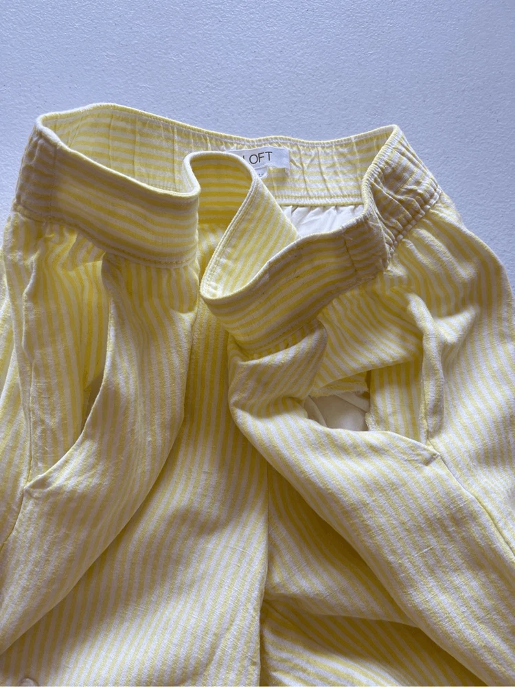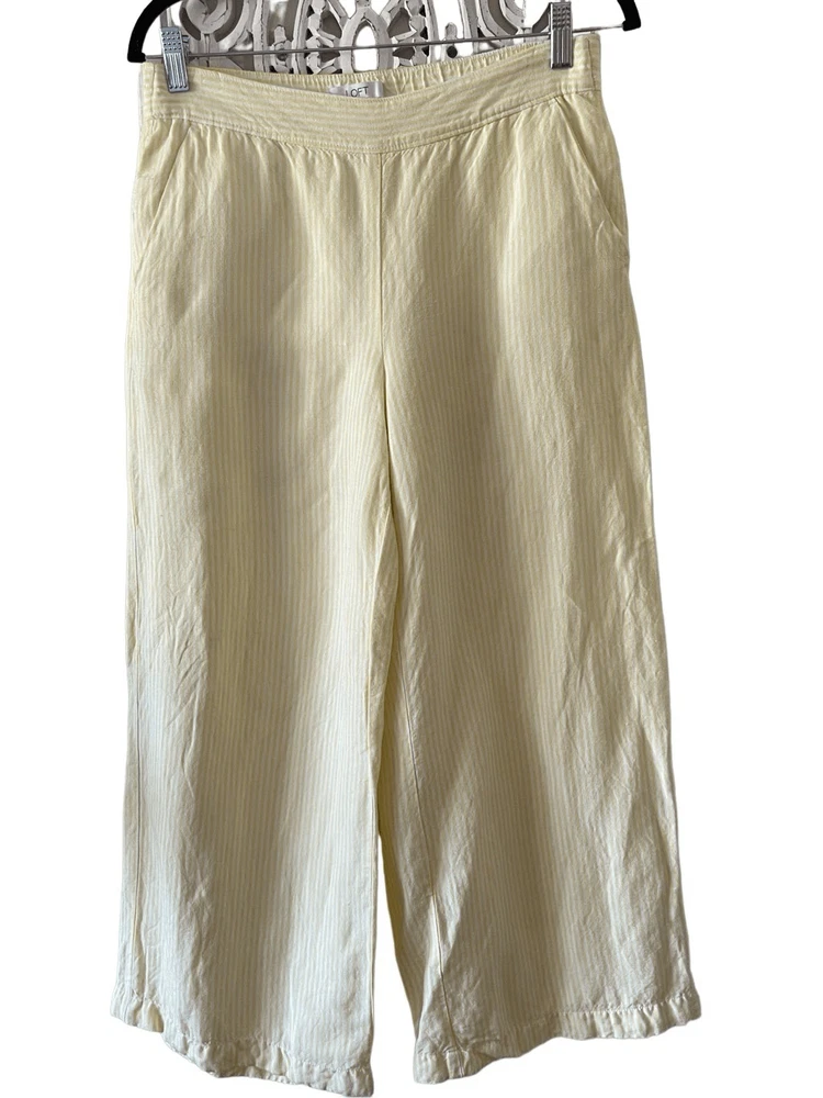 LOFT Women’s Linen Viscose Fun Light Beachy Boating Bright Yellow White Striped Wide leg Lined Summer Pants Size Small Elastic Stretchy Waist Pockets vacation outfit preppy y2k cottagecore gypsy boho coastal cowgirl tiktok classic color of the year: red baby blue metallic gold silver bronze classy trendy work office business casual contemporary minimalist business professional workplace wear fall winter spring summer 90s blouse holiday party Christmas’s thanksgiving date night wedding guest bridesmaid bachelorette baby shower casual dressy hippie beach birthday gift resort 00s cruise travel Light academia vintage baddie aesthetic color block pastel pearlcore prairie grannycore granny festival soft-girl dopamine dressing maximalist regencycore cottagecore instabaddie engagement party family photos western 60s 70s pool girly bohemian graduation homecoming flirty upcycle secondhand recycle sustainable clothing DeLaLunaShop333 #DeLaLunaShop333