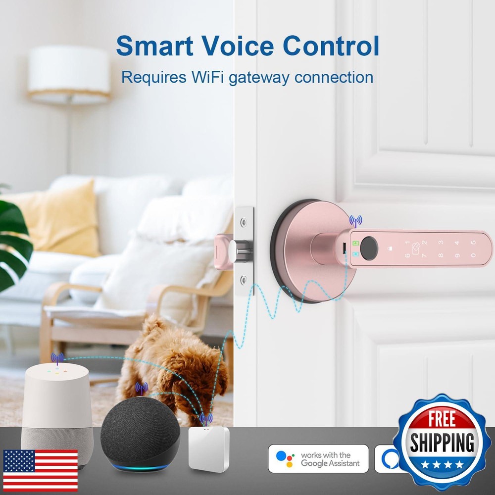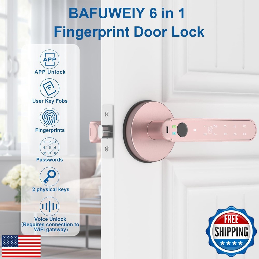 BAFUWEIY Fingerprint Door Lock, 6-in-1 Smart Door Knob with App Control/Fingerprints/IC Cards/Passwords/2 Keys, Fingerprint Door Knob Biometric Door Lock for Bedroom Apartment-Pink Features 【Various convenient ways to unlock】6-in-1 Fingerprint Door Lock : Smart Life APP Control + 100 Fingerprints + 100 Passcodes + 100 IC Cards + 2 Mechanial Key. Meanwhile Alexa and Google Assistant voice control can be used by connecting the gateway (sold separately); 【Smart App Remote Control】 Fingerprint door knob supports App to control all functions. Adding fingerprints/passwords, sharing temporary passwords, checking records, members' sharing. After pairing with gateway (sold separately), you can control the door lock easily and quickly anytime and anywhere; 【More Advanced and Convenient】Smart door locks can be voice controlled and are compatible with Alexa and Google Assistant. Our fingerprint reader has 25,600 pixel points for a more accurate and faster recognition rate, increasing the security of your home; 【Easy Installation】Fits most standard American single cylinder doors. We also provide instructions, installation and setup videos. Installation is very easy, only need a screwdriver (included), no additional drilling required. 【Reliable Emergency Charging】When there is no power, our smart lock will low battery alert. And it also has emergency charging Type-C port (no power storage function, only emergency unlocking). If you have any problem, pls feel free to tell me, we will try my best to solve it. Shipping Free & Fast Shipping: We offer free shipping to most of the USA with a normal delivery time of 3-7 days. However, due to the current situation, additional delivery time (up to 3 weeks) may be required for some items. Alternative Carriers: We may use alternative carriers (e.g., USPS, FedEx, UPS) to ensure your package arrives safely and on time. Due to the use of multiple carriers, we are unable to provide a tracking number automatically. Handling Time: Orders are processed and shipped within 1-2 business days of receiving cleared payment. Shipping Restrictions: Shipping to Alaska, Hawaii, Puerto Rico, Guam, and other US territories may incur shipping charges or delivery restrictions. Please contact us before ordering, or your order can be refunded/cancelled. State Restrictions: Certain items may not be shipped to California due to state regulations. Contact for Tracking Updates: If you require tracking updates or have any concerns about the delivery of your order, please feel free to contact us, and we will be happy to assist you. Return Policy 30-Day Hassle-Free Returns: If you are not completely satisfied with your purchase, you can return the item for free within 30 days of receiving it for a full refund or exchange. Easy Return Process: Contact us, and we will provide you with a prepaid return shipping label and detailed instructions. No Restocking Fee: There are no restocking fees for returns. However, the buyer is responsible for return shipping costs if the return is not due to a seller's error. Refund Processing: Refunds will be processed within 1 business day of receiving the returned item in its original condition. Payment We accept all major credit cards, PayPal, and Apple Pay for your convenience. Your payment information is secure and encrypted to ensure a safe and seamless transaction. Please complete your payment within 3 days of purchase to avoid any delays in shipping. Feedback Your feedback is extremely important to us. We strive to provide the best products and customer service possible. If you are satisfied with your purchase, please take a moment to leave us a positive review. If you have any concerns or issues with your order, please contact us before leaving negative feedback. We are committed to resolving any problems and ensuring your satisfaction. Contact Us If you have any questions or concerns, please feel free to reach out to our customer support team. You can contact us through the eBay messaging system. We are available Monday to Friday, 9:00 am to 5:00 pm EST, and we will do our best to respond to your inquiry within 24 hours. Thank you for supporting our small family business!