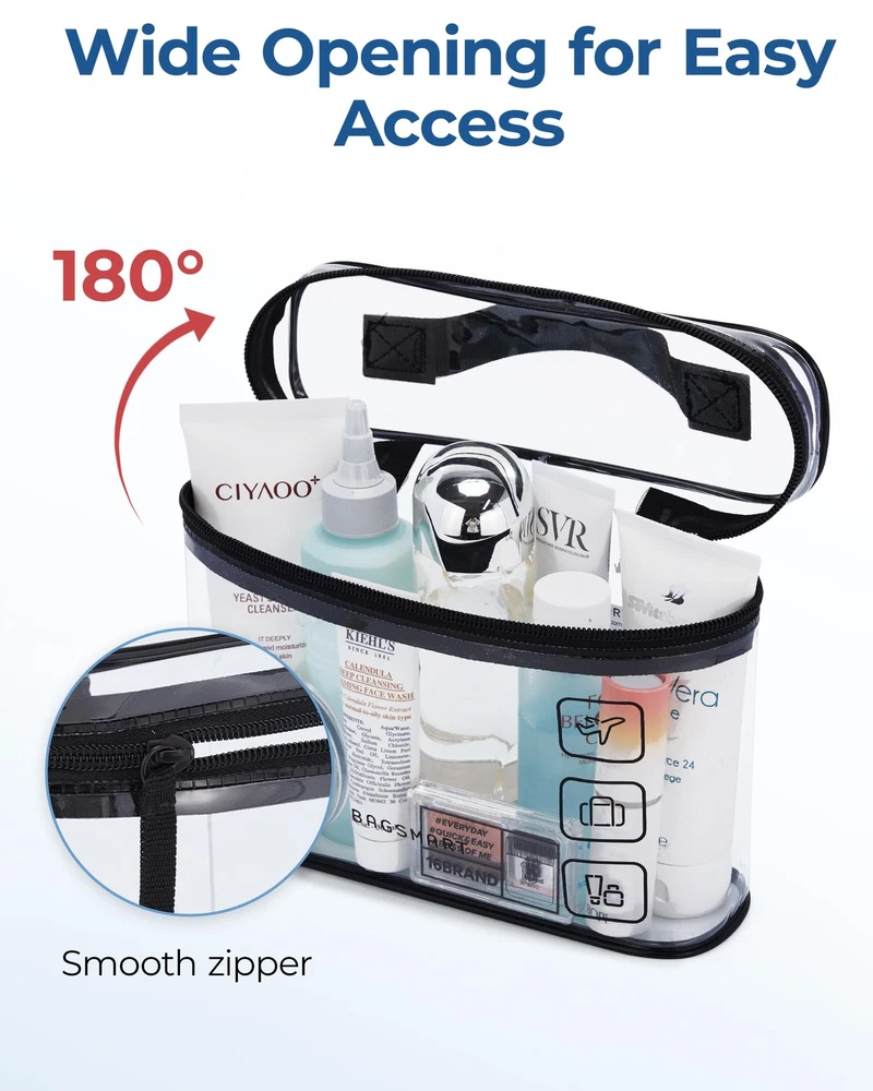 BAGSMART TSA Approved Toiletry Bag, 2 Pack Clear Makeup Cosmetic Bag Organizer, Features: ๐๐๐ยฐ ๐๐ฉ๐๐ง๐ง๐ข๐ง๐ ๐๐๐ฌ๐ข๐ ๐ง: TSA approved toiletry bag can open up to 180ยฐ, enabling the clear bag to be easily flipped open horizontally, providing convenient access to travel essentials. The durable handle design allows for easy lifting and hanging of this clear bag. ๐๐๐ญ๐๐ซ๐ฉ๐ซ๐จ๐จ๐ ๐๐๐ ๐๐๐ญ๐๐ซ๐ข๐๐ฅ๐ฌ: Clear makeup bag made of waterproof PVC materials. It is clear and easy to wipe clean, allowing for quick visibility and access. ๐๐๐ ๐-๐-๐ ๐๐ฉ๐ฉ๐ซ๐จ๐ฏ๐๐๏ผClear travel bags for toiletries are fully compliant with TSA 3-1-1 Rules and Regulations of all Airlines and get through airport security easy and fast. ๐๐๐ซ๐ฌ๐๐ญ๐ข๐ฅ๐ ๐ ๐๐๐ญ๐ฎ๐ซ๐๐ฌ๏ผClear cosmetic bag size is 8''L x 3''Wx 6.3''H. And equipped with a smooth zipper provides easy portability and quick access to items. ๐๐ซ๐๐ฏ๐๐ฅ ๐๐๐๐๐ฌ๐ฌ๐จ๐ซ๐ข๐๐ฌ๏ผ Bagsmart travel toiletry bag can be used as cosmetic bag, toiletry bag, grocery bag, toy bag, medicine bag, skincare bag, electronics bag, stationery bag, storage bag etc. Features: ๐๐๐ยฐ ๐๐ฉ๐๐ง๐ง๐ข๐ง๐ ๐๐๐ฌ๐ข๐ ๐ง: TSA approved toiletry bag can open up to 180ยฐ, enabling the clear bag to be easily flipped open horizontally, providing convenient access to travel essentials. The durable handle design allows for easy lifting and hanging of this clear bag. ๐๐๐ญ๐๐ซ๐ฉ๐ซ๐จ๐จ๐ ๐๐๐ ๐๐๐ญ๐๐ซ๐ข๐๐ฅ๐ฌ: Clear makeup bag made of waterproof PVC materials. It is clear and easy to wipe clean, allowing for quick visibility and access. ๐๐๐ ๐-๐-๐ ๐๐ฉ๐ฉ๐ซ๐จ๐ฏ๐๐๏ผClear travel bags for toiletries are fully compliant with TSA 3-1-1 Rules and Regulations of all Airlines and get through airport security easy and fast. ๐๐๐ซ๐ฌ๐๐ญ๐ข๐ฅ๐ ๐ ๐๐๐ญ๐ฎ๐ซ๐๐ฌ๏ผClear cosmetic bag size is 8''L x 3''Wx 6.3''H. And equipped with a smooth zipper provides easy portability and quick access to items. ๐๐ซ๐๐ฏ๐๐ฅ ๐๐๐๐๐ฌ๐ฌ๐จ๐ซ๐ข๐๐ฌ๏ผ Bagsmart travel toiletry bag can be usรฉd as cosmetic bag, toiletry bag, grocery bag, toy bag, medicine bag, skincare bag, electronics bag, stationery bag, storage bag etc. eBay integration by