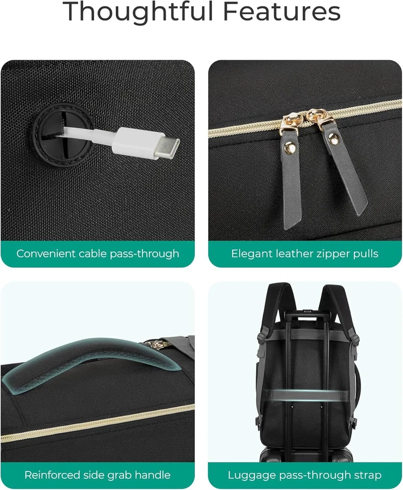 BAGSMART Travel Backpack for Women, Large Personal Item Bag, 40L Beige Product Details Product Dimensions: 8 x 13 x 18 inches Item Weight: 1.83 pounds Department: unisex-adult Age Range Description: Adult Number Of Items: 1 Capacity Total: 32 Liters 【Fashionably Functional Design】Elevate your travel style with a travel backpack carry on flight approved that blends fashion and functionality. Crafted from sturdy, scratch-resistant materials, this women's suitcase for travel stands out for its durability and chic appearance, making it perfect for modern female travelers who value both style and substance 【Ample Storage with 40L Capacity】Whether you're off for a weekend getaway or an extended trip, enjoy the spaciousness of 40L capacity. This carry on backpack accommodates everything from multiple outfits to tech gear, including a dedicated compartment for a 17.3-inch laptop. It's designed to meet the packing needs of dynamic female travelers who require versatility and organization 【Advanced Cleanliness Solutions】Maintain impeccable hygiene with an integrated antimicrobial lining in the wet bag of travel backpack for women. Crafted from premium waterproof material, it efficiently separates damp items or toiletries, safeguarding the rest of your belongings from moisture and odors 【Streamlined Travel Compliance】Navigate airports seamlessly with a travel backpack that meets optimal carry-on dimensions (18 x 13 x 8.2 inches). Compliant with major airline guidelines, it fits effortlessly into overhead compartments and under seats, ensuring hassle-free travel transitions.This personal item travel bag is also great for college, work, business and outdoor activities 【Ergonomic Comfort and Durability】The backpack for women features experience superior comfort with ergonomic, breathable shoulder straps and reinforced stitching for durability. Designed to endure extensive travel while providing ergonomic support, it's tailored for the active lifestyle of today's female travelers