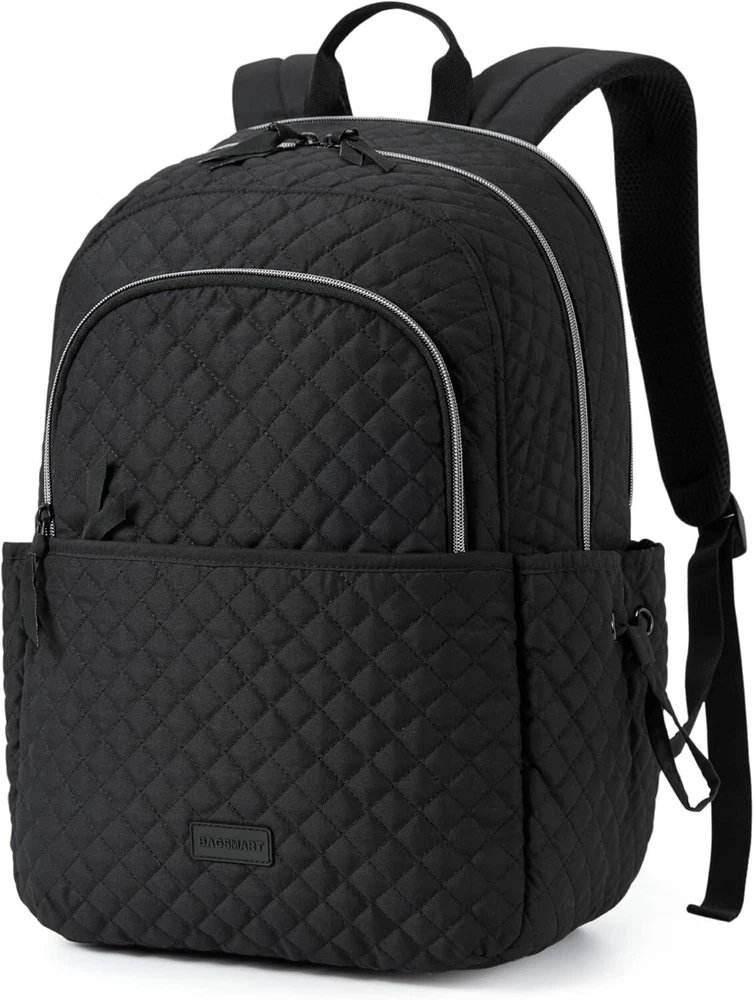 BAGSMART Travel Laptop Backpack, Quilted Work Bookbag Fits 15.6 Inch Laptop, Laptop Backpack with Charging Port Hole, Lightweight Bookbag for College Work Business, Classic Black
