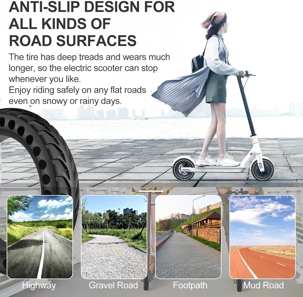 Store New Arrivals Add to Favorite View Feedback Contact BANGTING 50/75-6.1 Solid Tires for Electric Scooter, 8 1/2 X2 Tire for Gotrax Description Item model number B20201101-1 Rim Size 85 Inches Load Index 70 Speed Rating A8 Tread Depth 0.34 Inches Section Width 2 Inches Brand BANGTING Item Diameter 8.5 Inches Country of Origin China Load Capacity 330.7 Pounds Rim Width 2 Feet Item Weight 1.02 Kilograms Manufacturer Part Number B20201101-1 Tread Type Non-Directional Construction Type Radial Color Black 1PCS Seasons Year Round Model 8.5x2 inch Tire Size 8.5x2 Manufacturer BANGTING 【Compatible】- Specially designed for tires of electric scooters with 8.5 x 2, 50/75-6.1, 8 1/2 x2, including Gotrax GXL V2 / XR / APEX, Xiaomi Pro 2 / M365 / M365 Pro / 1S / 3 / 3 Lite / Essential and others. Please check the pictures to confirm your original tire size and compatibility before ordering. If your scooter's original tire size is 8.5 x 2, 50/75-6.1, 8 1/2 x2, please feel free to use our tires. 【High Quality Material】- These BANGTING electric scooter tires are made of high quality rubber material, providing excellent anti-shock performance and buffer pressure through special hollow design. The ridged surface provides excellent grip and is abrasion resistant, burst and pressure resistant, lightweight and durable. 【Best Alternative】- Say goodbye to flat tires with our solid rubber tires, which offer you a safer and more comfortable riding experience compared to traditional pneumatic tires. 【Strong and Durable】- Made of high quality natural rubber from southern Thailand, our tires are twice as hard as ordinary tires. Heat resistant, scratch resistant and durable, ensuring a stable and comfortable ride. 【Worry-Free Tires】- No inflation, no patches, no tubes and no bike pump required, for convenient and maintenance-free riding. Product Description BANGTING Honeycomb Solid Tire Replacement for Scooter Tires (Diameter 8.5" Wide 2" ) Compatible Models: Xiaomi M365 / Xiaomi M365 pro / Xiaomi 1s / Xiaomi Pro 2 / Xiaomi Essential Cecotec Bongo Serie A / Cecotec Bongo Serie A Connected Hiboy MAX V2 / Hiboy S2 Ducati Pro1 Evo / Ducati Pro1 Plus Gotrax GXL / Gotrax XR Zwheel Serie E9 Denver Sco-8535 Vivobike S2 / Vivobike S3 ...... For All Scooter Tires (Diameter 8.5" Wide 2" ) The full honeycomb tires are made of high-quality natural rubber. It is twice as thick as other products and is characterized by good penetration resistance, excellent tear resistance, scratch resistance and durability, which makes it more stable and comfortable when driving. It is more durable than other conventional inflated tires. Let yourself fall in love with this new scooter. Come! Your scooter is now ready to drive! Anti-Slip Layer Thanks to its anti-slip layer, it can be prevent the tire from slipping in snowy and rainy weather, without danger for the scooter. Anti-Drop Layer The inner layer of the tire has an anti-drop layer. Make sure the tire is tightly connected to the hub of the wheel. It's just as safe even if it's faster. Honeycombs Design Honeycombs with supports and newly increased holes can provide the better shock absorption. And the honeycomb holes can dissipate heat more quickly and serve for a longer time. How to Install? Step 1 Before installing, please soak the tire in hot water of 50-80 ℃ of 5-10 minutes making it softer and easier to install. Ensure the the tire is completely immersed please. Step 2 Cover the inside of the tire with soapy water or with a special tire lubricant (avoid using the grease lubricant, otherwise the tire will be damaged). Step 3 Place either side of the hub on the tire and step on this side (it is recommended to place another tire under this tire) Step 4 Use the professional tire levers to make the hub enter the tire. ABOUT US We offer the best prices around on high quality products. Our E-store includes media such as books, movies, music and games while offering electronics, toys, sporting apparel, clothing, tools, general home, garden items and more. SHIPPING We are always working hard to ensure your package arrives as soon as possible. Please understand that some factors like weather, high postal traffic, and the performance of shipping companies are outside of our control. We offer free shipping to the lower 48 states and ship within 5 business days of payment, usually sooner. We do not accept P.O. Boxes. Please provide a physical address. RETURNS We offer a 30-Day Return Policy on items which you are not completely satisfied with. You have the option for a full-refund or an exchange of the item. No returns are available on items shipped outside of the USA. PAYMENT We accept PayPal. CONTACT US This page content is yet to come Please ad us to your favorite seller and visit again later Thank You CUSTOMER SATISFACTION We try our very best to make sure every customer is completely satisfied. If there's a problem, message us! We're happy to help.