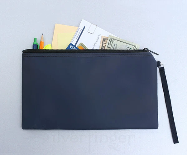 Classic Bank Bags Bank Deposit Bags 11” in. (27.5cm) x 6” in.(15cm) Ideal Office School Home Money Bag for Coins, Cash, Checks Bank Deposits Stash inside a safe to organize your secure storage Invoices, Receipts, Bills Mail Correspondence plus other Important Papers and Documents Academic Utility Art Supplies Organizer Great for Travel Just the right size to organize so many things & carry all your little extras— Tissues Toothbrush, Mints Hairbands, Lip Balm Medicines Practical Pencil Case Ditty Bag Tote Holds lots of items to keep you organized Sewing Knitting Crocheting Notions Keep within a larger tote bag or purse for organized inner storage and make everything easy to find. Batteries Chargers, Adapters, Cables Mobile Phone An essential for Event Vendors Fundraisers Retail and Restaurant Server Jobs that require holding onto Currency, Receipts, and Tips to Store Cash and Make Change. Deep Indigo Blue Leather-Like Vinyl Leatherette Material Sturdy Nylon Zipper + Woven Nylon Wrist Strap Buy More Save More FREE SHIPPING! HIGH QUALITY GREAT VALUE From your friends at