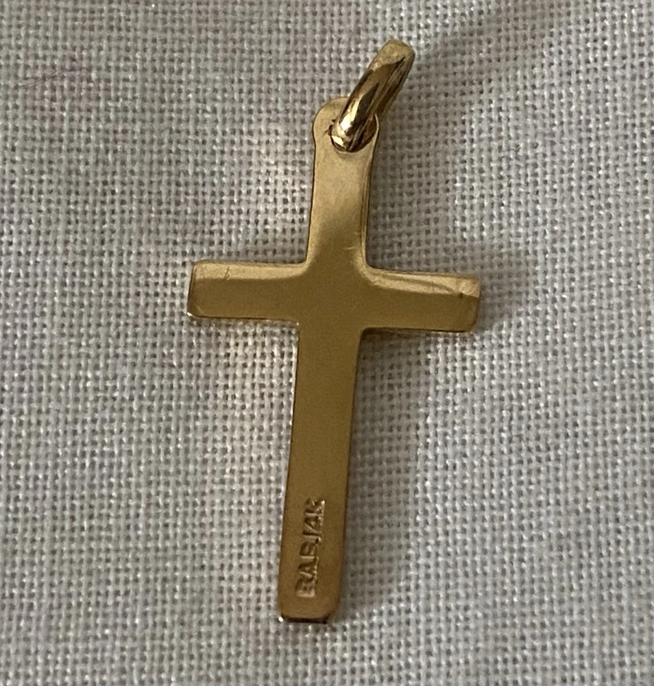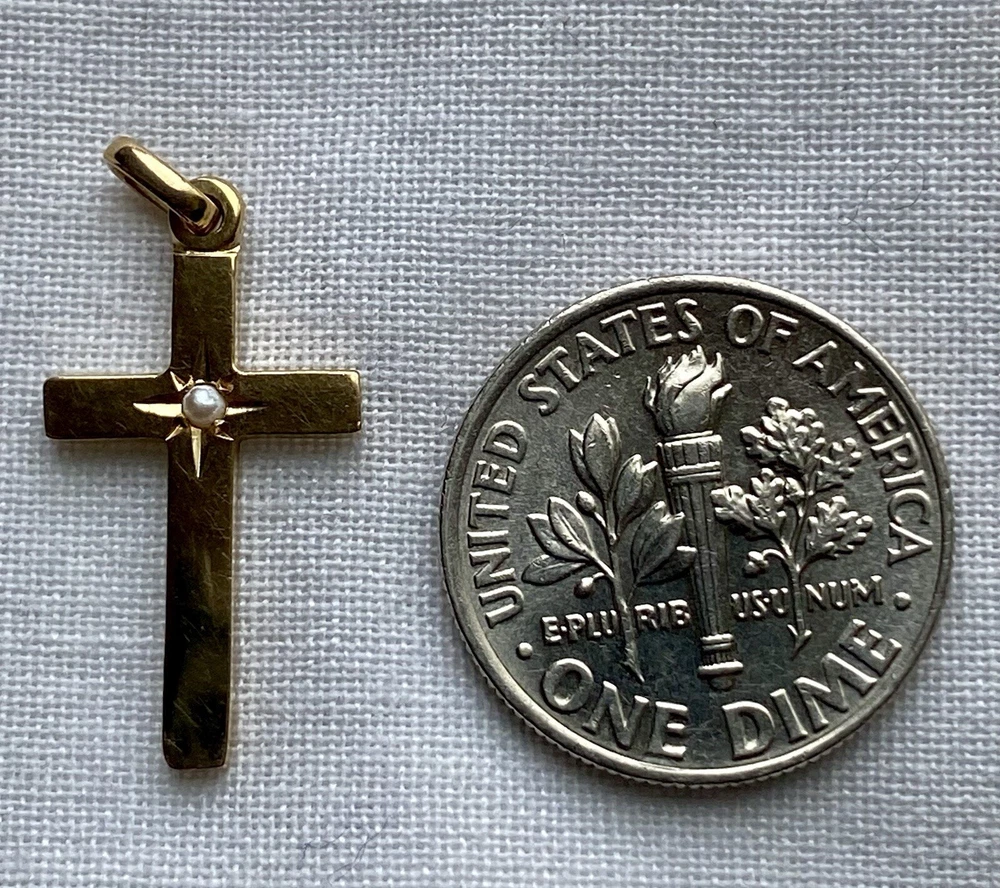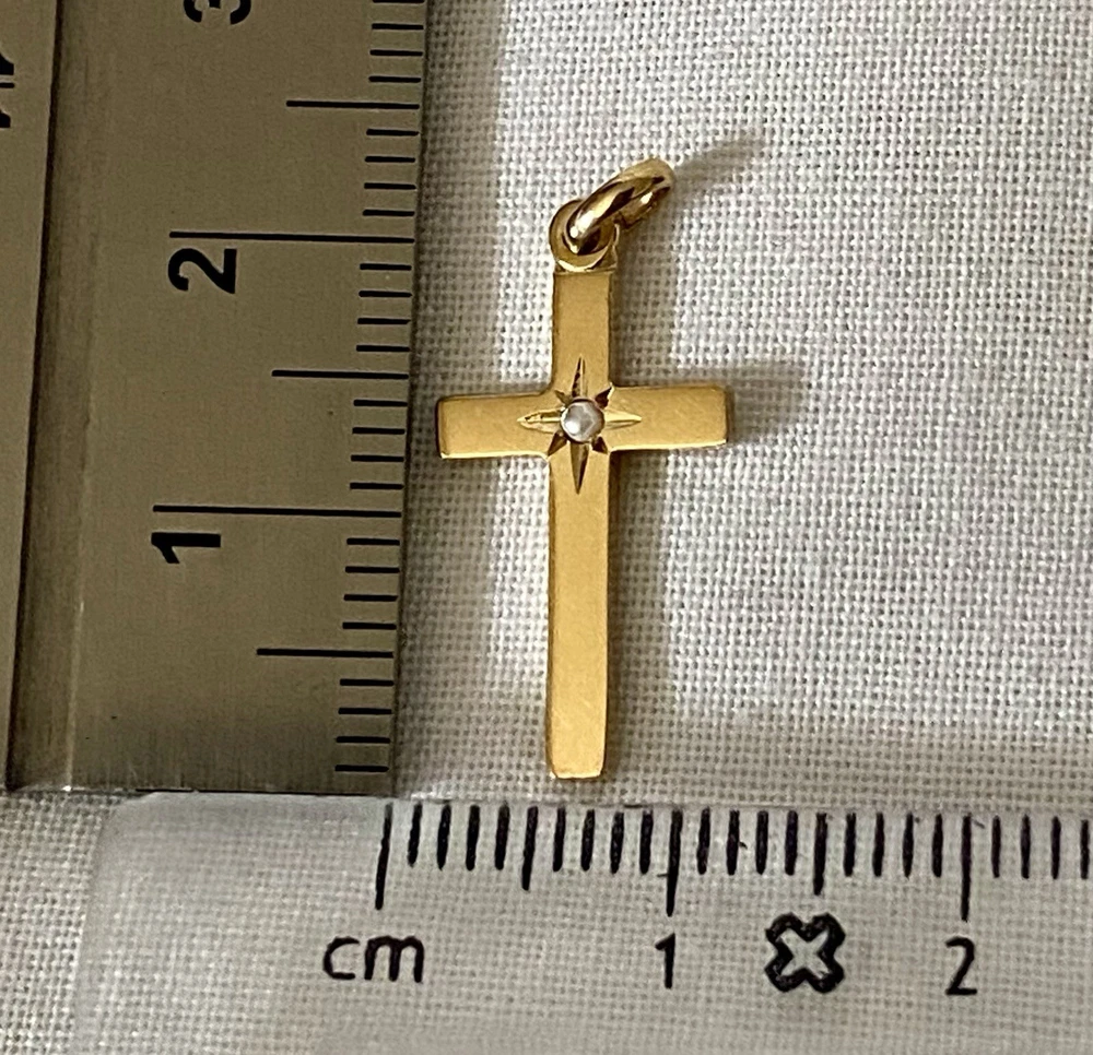 BAR 14k Yellow Gold Cultured White Freshwater Pearl Cross Small Pendant ~0.98g