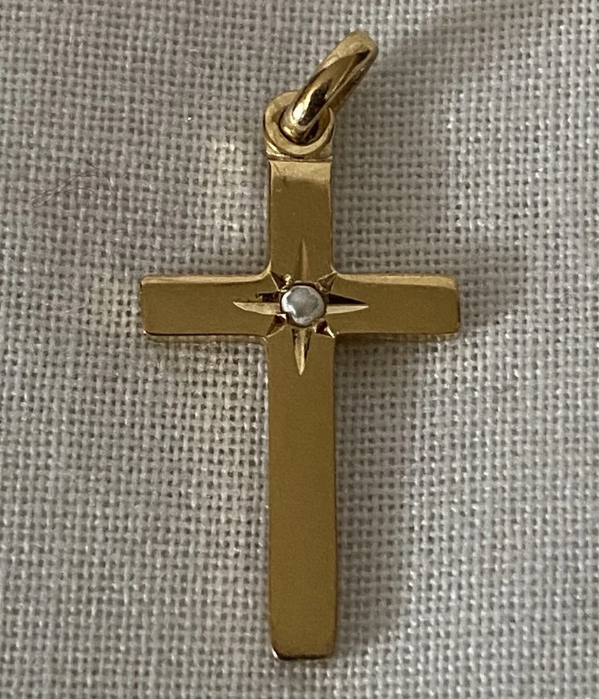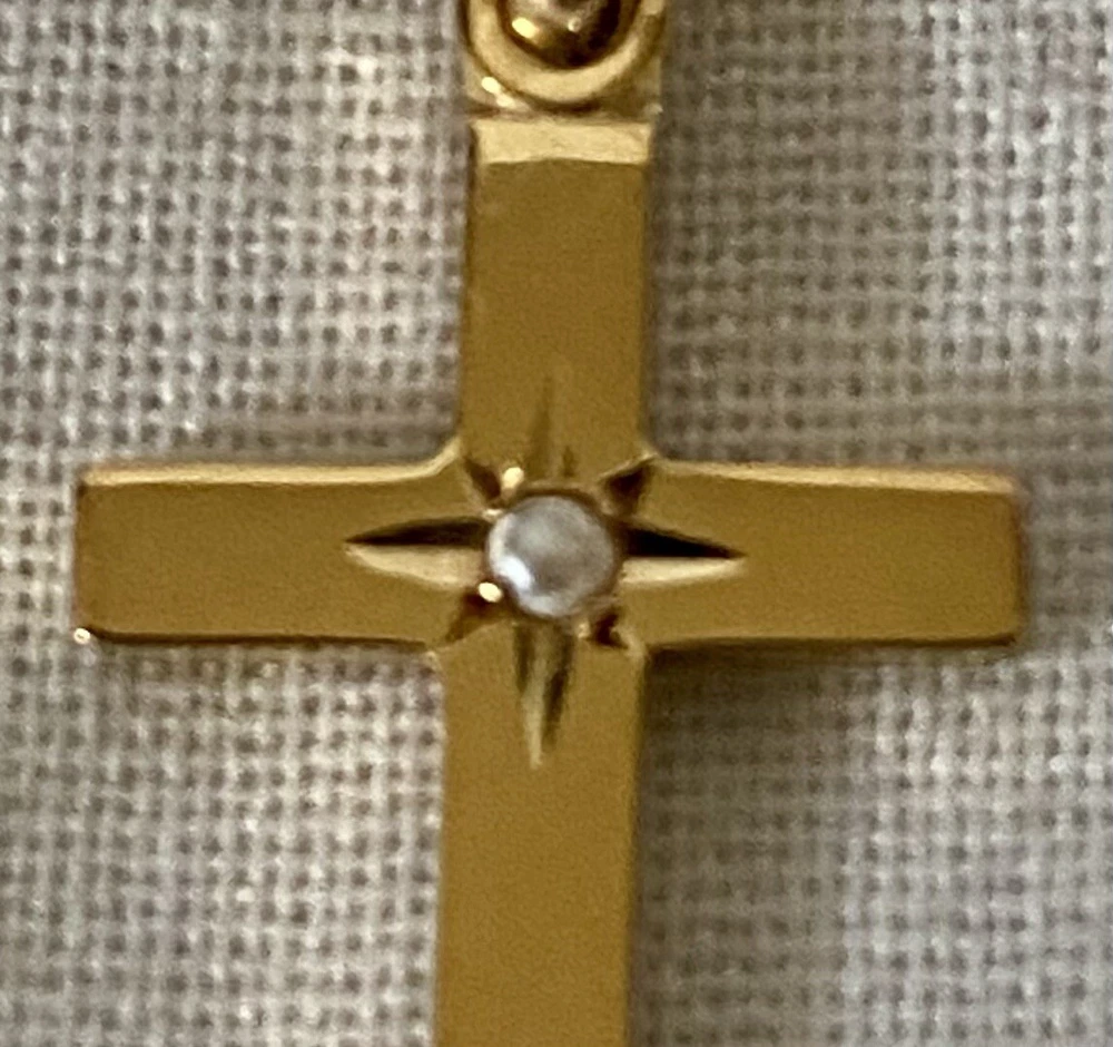 Main Stone:White Freshwater PearlTotal Carat Weight:NASetting Style:ProngChain Type:N/ANecklace Length:NABase Metal:GoldNumber of Gemstones:1Width (mm):NACountry/Region of Manufacture:United StatesPendant Shape:CrossTheme:BeautyOccasion:Engagement/Anniversary/Birthday/Valentines/Mother's Daygtin13:Does not applyCountry of Origin:United StatesMain Stone Shape:RoundSeller Notes:“Good condition as seen in photos.”Metal:Yellow GoldMain Stone Creation:NABrand:BAR 14kColor:YellowMaterial:Not ApplicableType:NecklaceLength:NAMain Stone Color:PearlDepartment:WomenStyle:PendantMetal Purity:14kSecondary Stone:No StoneUPC:Does not applyCollection:NA