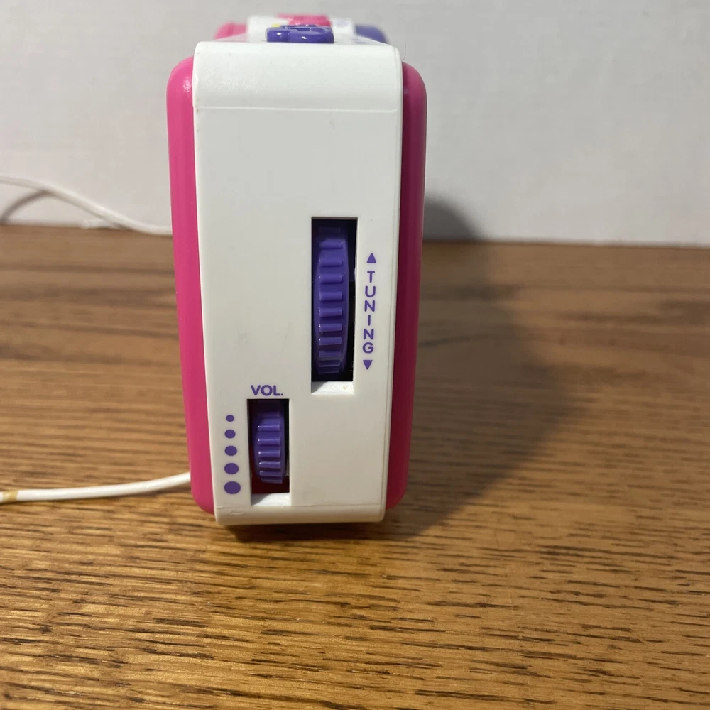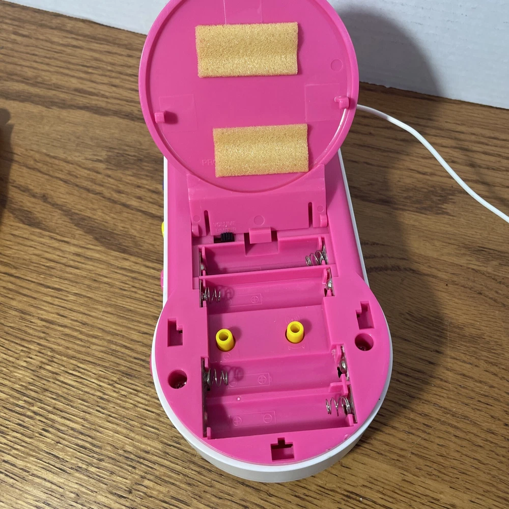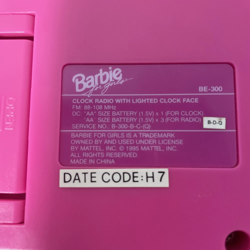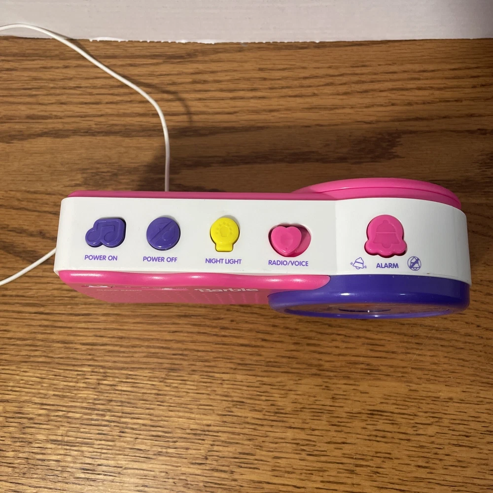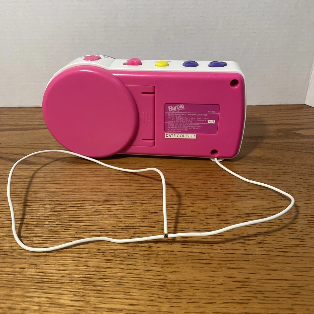 This vintage Barbie clock/FM radio is a must-have for any Barbie collector or fan. Made by Mattel in 1995, it features a lit-up face and alarm function. The clock is battery-powered with a quartz movement and has a multicolor plastic design. The clock radio is in its original, unopened packaging and has not been sure of the chime sequence. It is a great addition to any collection and perfect for teens, girls, and unisex kids who love fashion and vintage/retro style. Features of volume limiter button inside the battery pack. The battery pack has very minimal corrosion doesn’t affect it working. Tested and is working. This will ship without the batteries in great vintage condition.