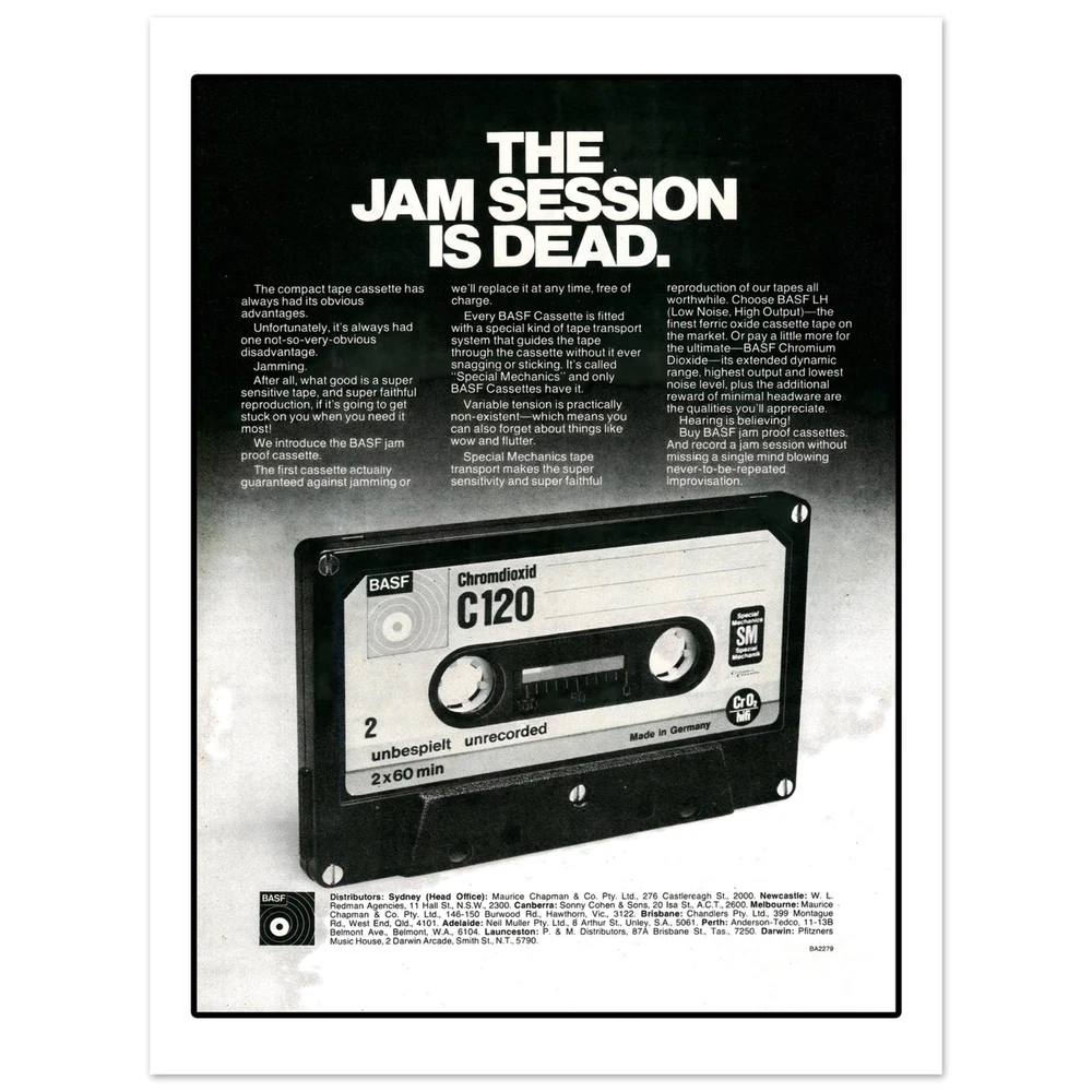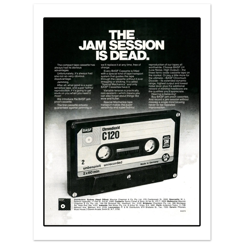 BASF Cassette Tape Eighties Retro Advertisement Art Print Poster All retro advertising prints are created using scans of the original ad. As a result, prints may show signs of age and/or wear or other imperfections. • Digitally Printed.• Sizes available: 8x10, in. 11x14 in, 12x16 in, 16x20 in 18x24 in.• 16x20 in, 18x24 in• Printed with a matte finish on heavy duty archival paper.• 200 GSM heavy weight paper BASF Cassette Tape Eighties Retro Advertisement Art Print Poster All retro advertising prints are created using scans of the original ad. As a result, prints may show signs of age and/or wear or other imperfections. • Digitally Printed. • Sizes available: 8x10, in. 11x14 in, 12x16 in, 16x20 in 18x24 in. • 16x20 in, 18x24 in • Printed with a matte finish on heavy duty archival paper. • 200 GSM heavy weight paper × Shipping info Click the Shipping & Payments tab above the listing description for more info FREE Shipping See more... USPS First Class - $0.00 USPS Priority Mail - $9.95 Click the Shipping & Payments tab above the listing description for more info! Additional delivery notes PICK UP OPTION Sorry, our items are NOT available for pick-up. PAYMENT Immediate payment is required upon selecting "Buy It Now" or upon checking out through the cart. We accept payment via U.S. PayPal accounts and all Major Credit Cards, Debit Cards & Google Pay. We are legally required to collect sales tax in those states and localities where we maintain a physical presence (nexus). The applicable amount of sales tax charged to an order will be calculated based on the shipment destination's state and local sales tax laws. Thank you for shopping with us on eBay! Additional Information No additional information at this time Ask seller a question You might also like Peaches Records & Tapes Est. 1975 Record Shop Music Store Men's Unisex T Shirt T Elmore Elmo James 78 RPM Mississippi Delta Blues Trumpet Record Label Men's T Sh Howlin' Wolf Chicago Blues Men's T Shirt Tee Opryland USA Amusement Park Nashville Retro Unisex T-Shirt Tee Contact To contact our Customer Service Team, simply click the button here and our Customer Service team will be happy to assist. Ask seller a question © Mad Apple Shop Shipping & Payments Shipping is FREE for this item Payment Accepted Payment Methods Immediate payment is required upon selecting "Buy It Now" or upon checking out through the cart. We accept payment via U.S. PayPal accounts and all Major Credit Cards, Debit Cards & Google Pay. We are legally required to collect sales tax in those states and localities where we maintain a physical presence (nexus). The applicable amount of sales tax charged to an order will be calculated based on the shipment destination's state and local sales tax laws. Thank you for shopping with us on eBay! Returns Returns are accepted Items must be returned within 30 days of the auction ending Buyer will pay for return shipping. eBay integration by