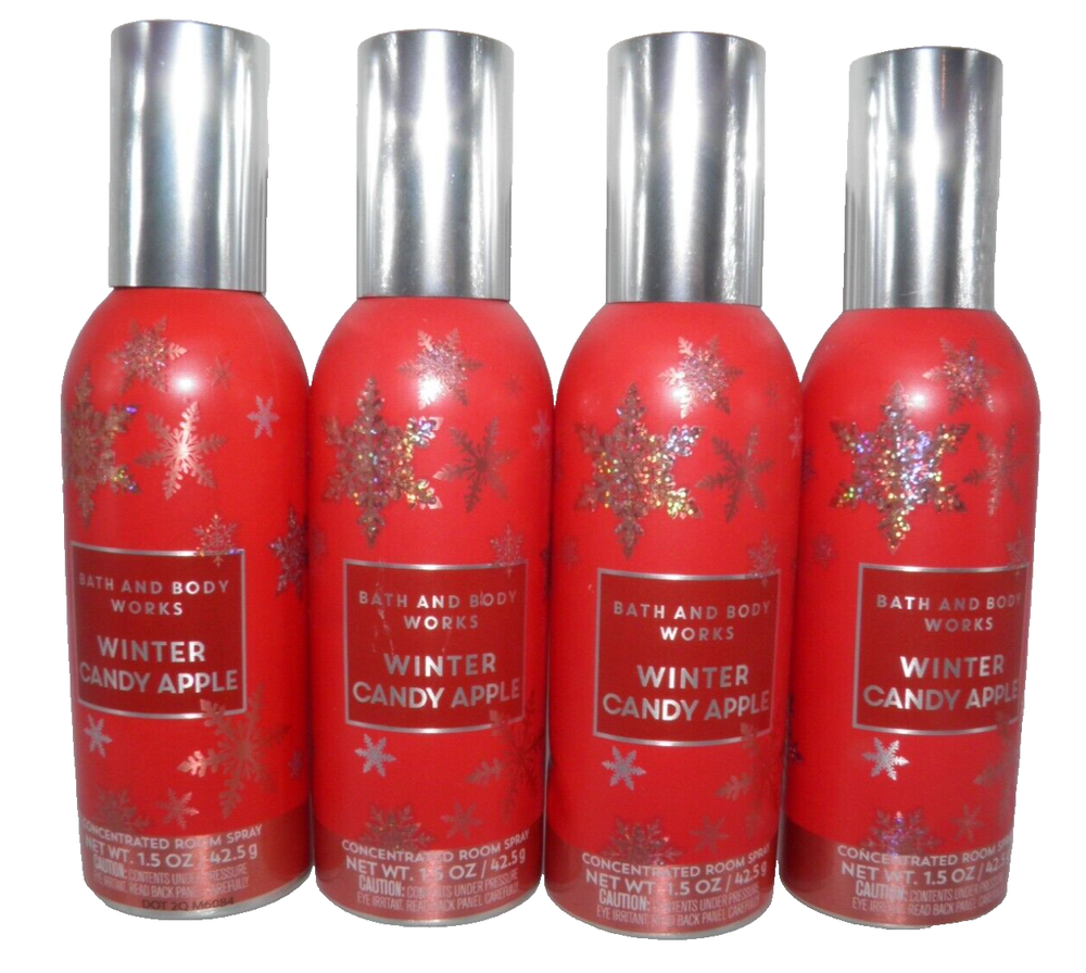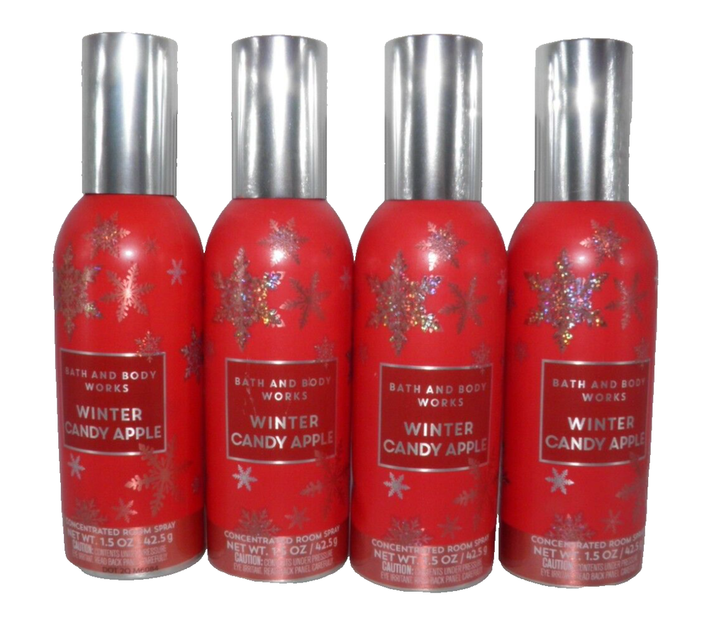 BATH & BODY WORKS WINTER CANDY APPLE ROOM SPRAY (4 PACK) CONCENTRATED 1.5 oz Each Mailing Address - We will ONLY ship to the address on file with ebay. Before making a purchase, please ensure that your address is correct. We may otherwise cancel the sale. Handling Time - Our handling time is set to THREE BUSINESS DAYS. We ship packages Monday - Friday, with the exception of holidays. This listing is NOT sponsored by, affiliated with or representative of the mentioned brand(s), trade name(s), trademark(s) and does not claim any ownership of such. All trademarks or brands mentioned in this listing are registered trademarks of their original owners who reserve all their rights and ownership. The use or mention of any trade-name, product name, or trademark is necessary and for identification and is for reference purposes only.
