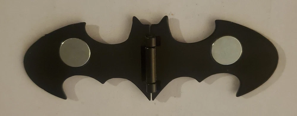 Awesome rare money clip The Batman 1989 Batarang Money Clip is a hinged magnet clip designed to securely hold bills and cards in place. This money clip features the iconic Batarang symbol from the 1989 Batman film, adding a touch of superhero flair to your everyday essentials. The sleek black design and Batman character make it a stylish and practical accessory for any Batman fan looking to keep their cash organized in a unique way. Thanks for looking