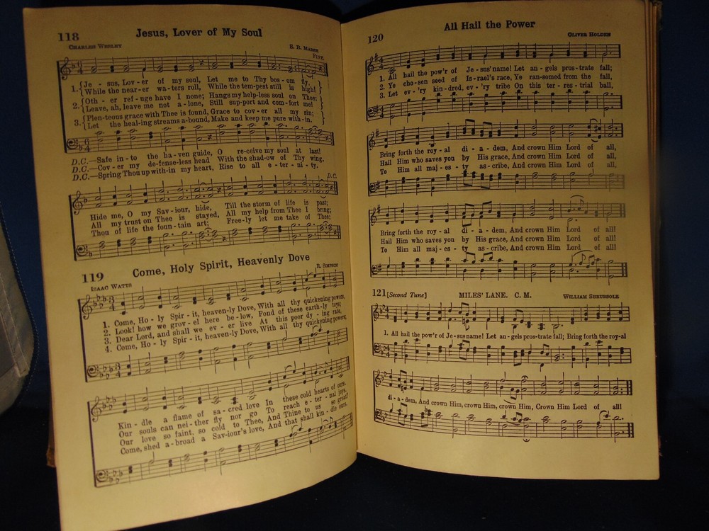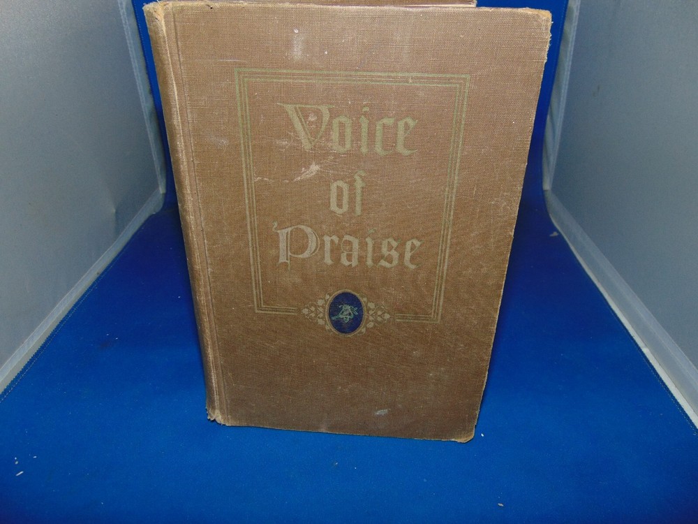This copy of 1947 VOICE OF PRAISE is full of songs such as ONCE FOR ALL, PRAISE HIM, PRAISE HIM, BLESSED ASSURANCE, CHRIST AROSE, JOHN THREE SIXTEEN, HIS LOVE WON MY HEART, TRUSTING JESUS AND MANY MANY MORE. There are 314 beautiful songs in this book