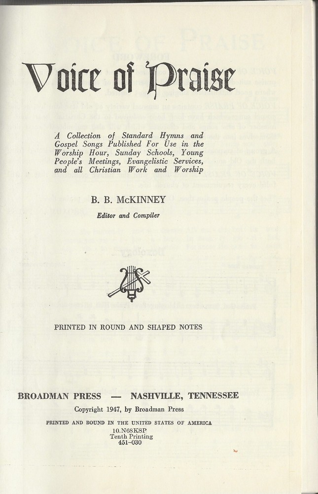 This new, hardcover hymnal with a sewn binding is from the inventory of a closed college book store, Trinity Books, Ltd., Wichita Falls, TX. The hymnal is in perfect condition except for signs of shelf wear and customer handling. No inventory marks on book. Last copy, left over from a special purchase from Broadman Press. It contains 314 hymns, songs, choral responses and responsive readings. It includes a topical index and an index to first lines and titles.