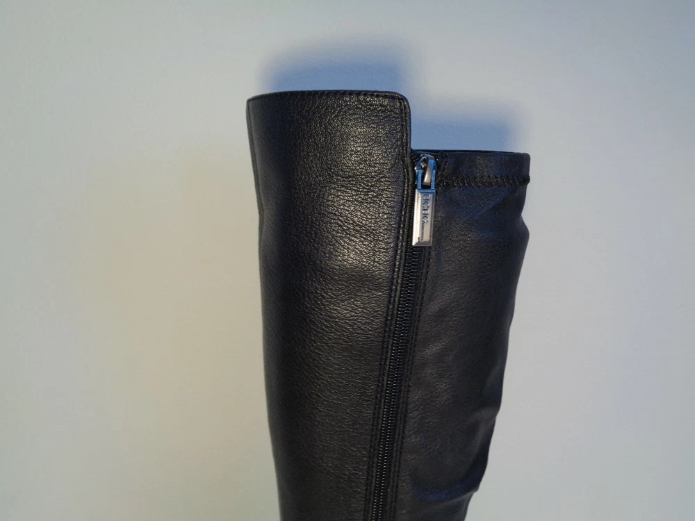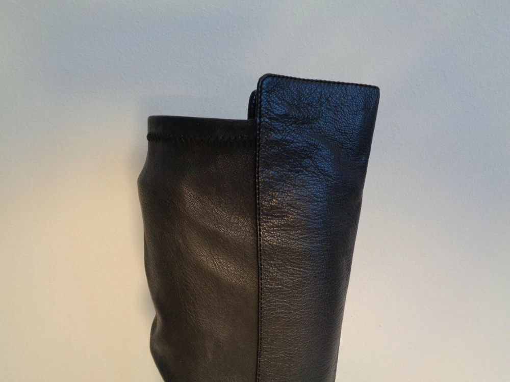 BCBG BCBGeneration Size 6 M KAI Black Leather Riding Boots New Womens Shoes Style: BG-KAI Color: Black L eather and man made upper Man made lining and outsole Inner shaft zipper L ug Sole Stretch elastic shaft for easy fit and comfort Shaft height is approximately 16.5 inches Heel height is approximately 1.25 inches Top to bottom is approximately 17.25 inches Boot opening is approximately 13.5 inches and flexible Eur 36