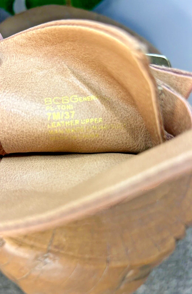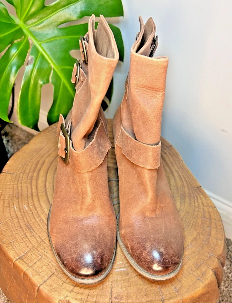 Stylish BCBG booties in a beautiful distressed tan color with multiple buckles. These pull-on boots feature straps and are perfect for travel, casual outings, workwear, and business meetings. The leather upper and outsole provide durability, while the leather insole adds a touch of luxury. These boots are a size 7, which is equivalent to a EU size 37. The solid pattern are the same as the Lucky Brand Tommie Boot. Ideal for the winter, fall, and spring seasons, these BCBG Generation Toni Brown booties are a must-have for any fashion-forward woman.