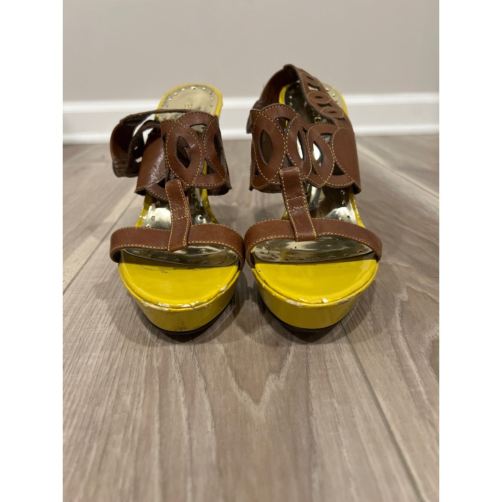BCBGMAXAZRIA Yellow Strappy Wedge Heel Size 7.5B KB276