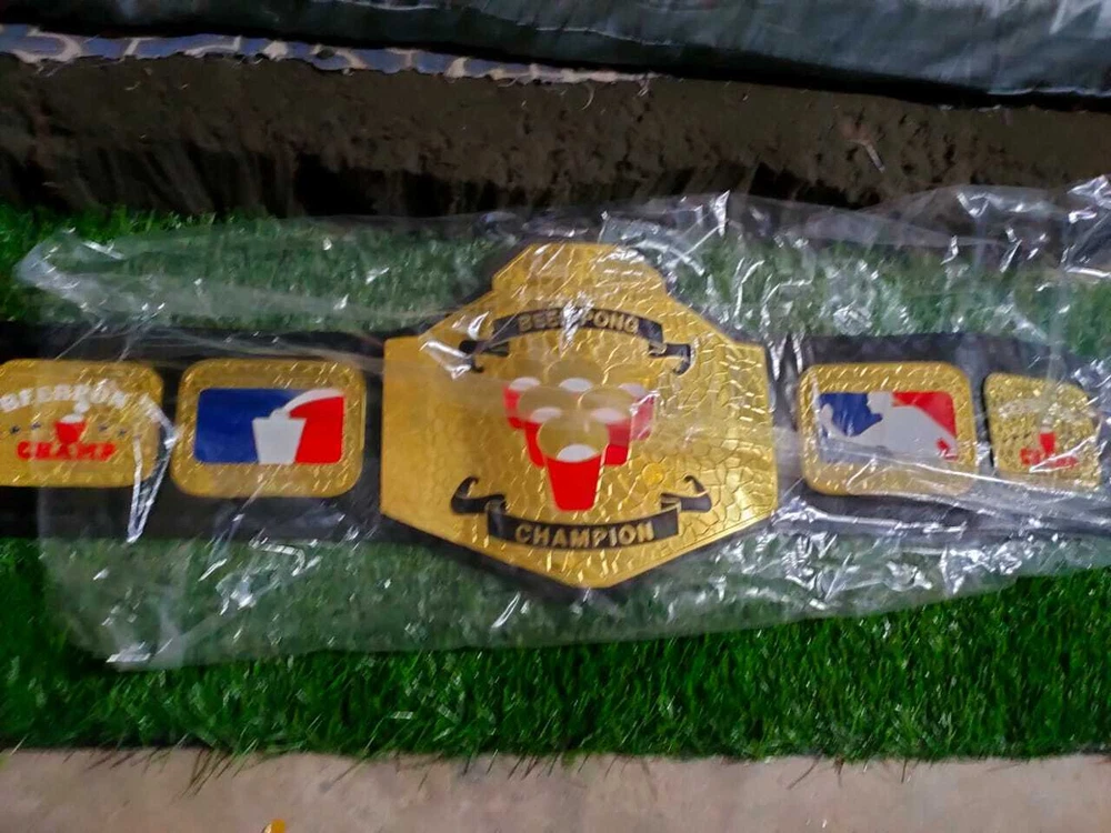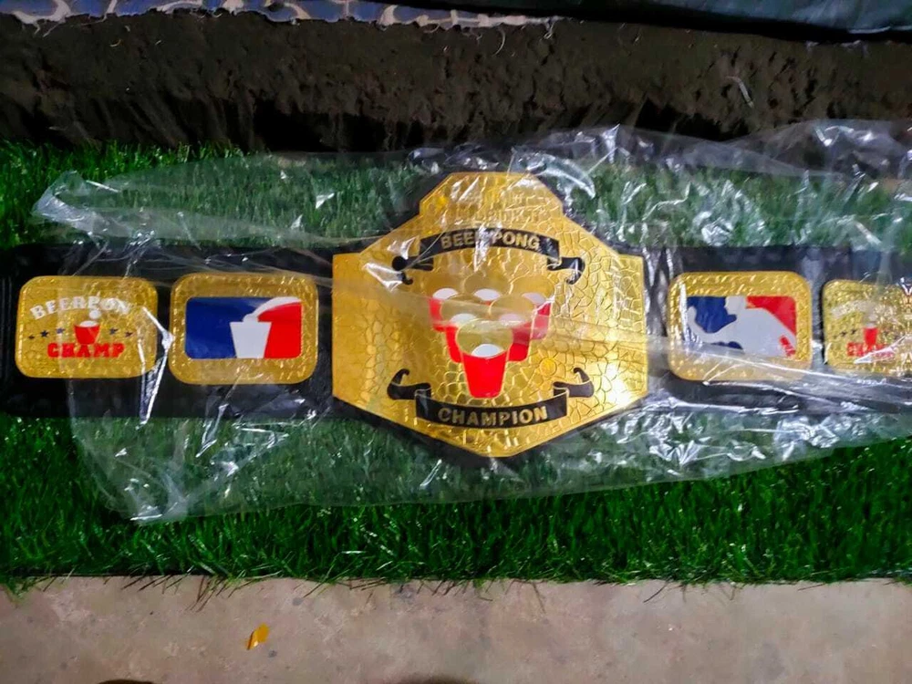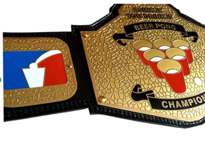 Welcome to our shop ------------------------------------------- We are specialist in manufacturing handmade products:: Our wide range of products include: >>>>Championship Belts WWE | WWF | AEW | UFC | WBC | WCW Product Description *** BEER PONG CHAMPIONSHIP BELT BLACK LEATHER STRAP ADULT SIZE *** Plate Metal: Brass (Zinc available on request with additional cost) Strap: 100% Leather Largest Waist Size: Fits upto 46'' Belt Length: ~50" Weight: 6.17 lbs | 2.81 Kg Plate Thickness: 2mm (4mm Version available on demand with additional cost) ::The belt is well crafted and manufactured to meet the quality demands of fans:: Get your hands on this marvelous piece now! Note: If you need further details kindly inbox us, we will try to be as responsive as possible. ------------------------------------------- Return Policy: Generally we don't have much complains on our products and we make sure to 100% satisfy our clients. We send the product in well Bubble Wrapped packaging so there is highly unlike chance of getting damaged item. In case there is a damage, we will try to give partial refund or you can ask for full refund within 30 days after returning the belt to origin. NOTE: 1. If you have placed the order by mistake or you have purchased a wrong item then we are not going to refund that. 2. Buyer will pay the shipping fee of returning the belt. ------------------------------------------- Happy Shopping! :)