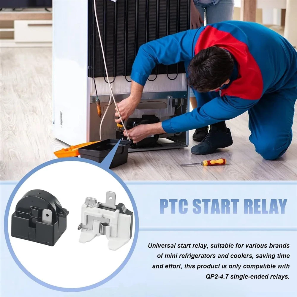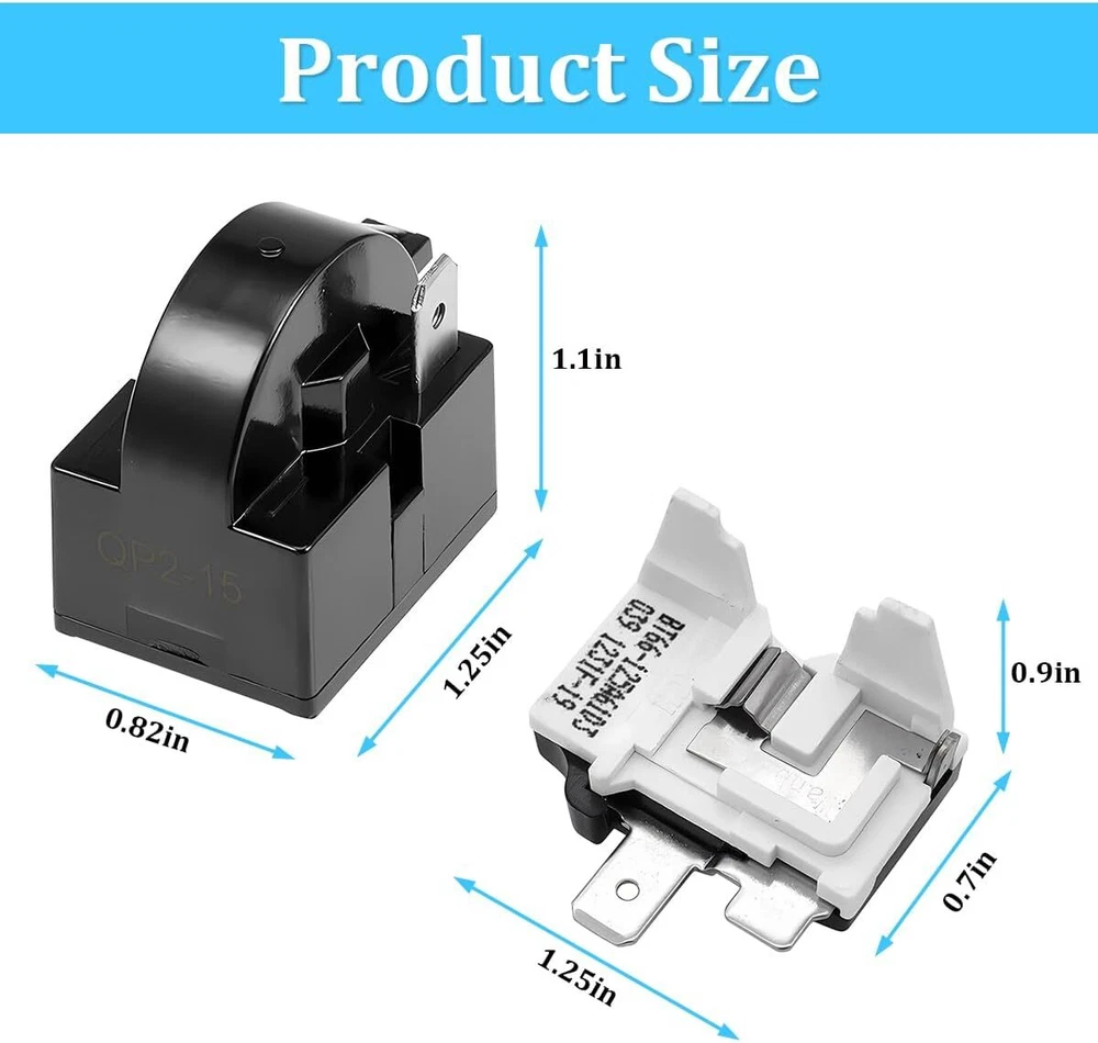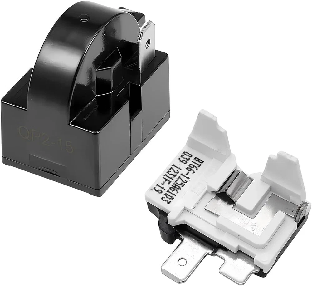 BELOMI 2PCS QP2-4.7 1Pin Refrigerator Starter Relay and 6750C-0005P Overload Protector, Mini Fridge Start Relay Parts Replacement, Compatiable with Most Refrigerator Cooler Compressor Product Details Contact Material: Silver Or Copper Contact Type: Normally Open Brand: BELOMI Operation Mode: Automatic Coil Resistance: 4.7 Ohms 【Starting Assistance】: This refrigerator start relay is a single pin. Since compressor startup instantly requires a higher current than during normal operation, this start relay is able to provide startup assistance. It can provide an instantaneous high current pulse when the refrigerator compressor starts to help the compressor's motor overcome the initial starting resistance and start running smoothly. 【Overload Protection】: The 6750C-0005P overload protector is a very practical device. It can detect an abnormally high current during compressor operation (usually caused by overheating of the compressor, mechanical failure, or voltage instability), this protector will quickly cut off the power supply to prevent the compressor from being damaged due to overloading. 【Energy-Saving】: Starting the compressor through the relay prevents high current from passing directly through the main control circuit of the refrigerator, which prolongs the service life of the appliance. Moreover, after the start is completed, the relay only maintains a small maintenance current, which reduces energy consumption and improves energy utilization efficiency. 【Package Content】: You will receive a QP2-4.7 1pin refrigerator start relay and a 6750C-0005P overload protector. Together, these two devices form a safeguard system for the safe start and operation of the refrigerator compressor, ensuring efficient and safe operation of the refrigerator.