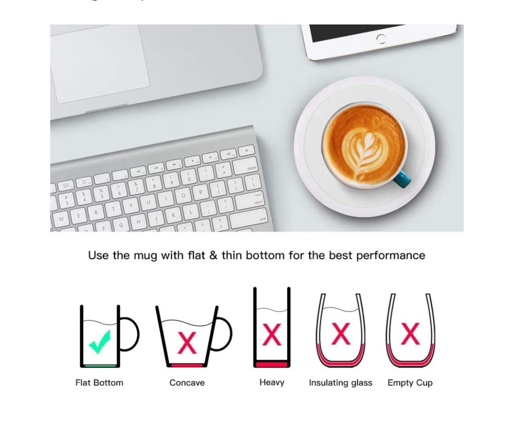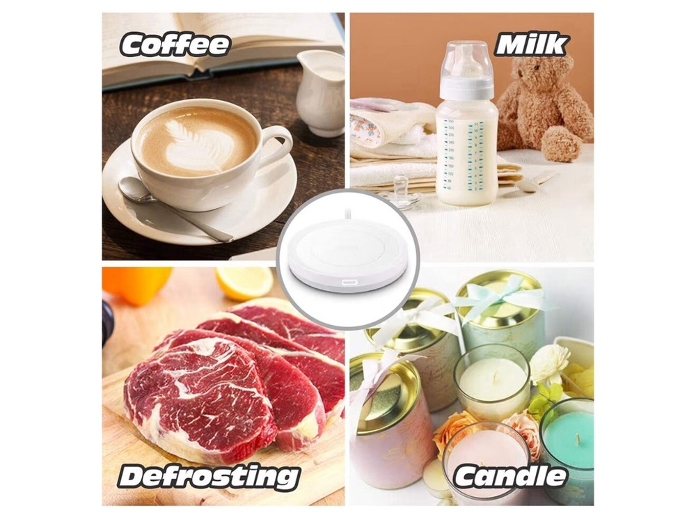 BESTINNKITS White Smart Coffee Auto On/Off Gravity-Induction Mug Office Desk Use, Candle Wax Cup Warmer Heating Plate (Up to 131F/55C), Middle