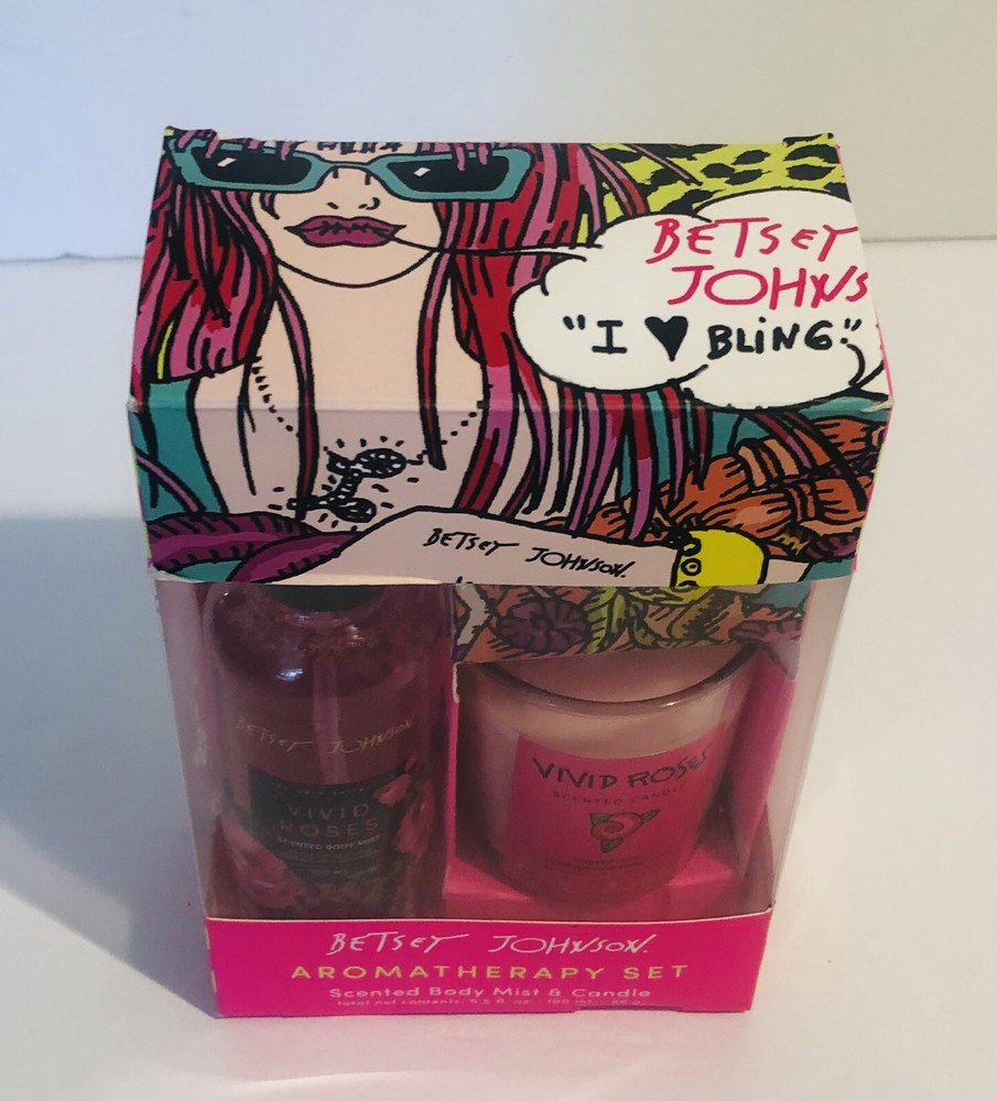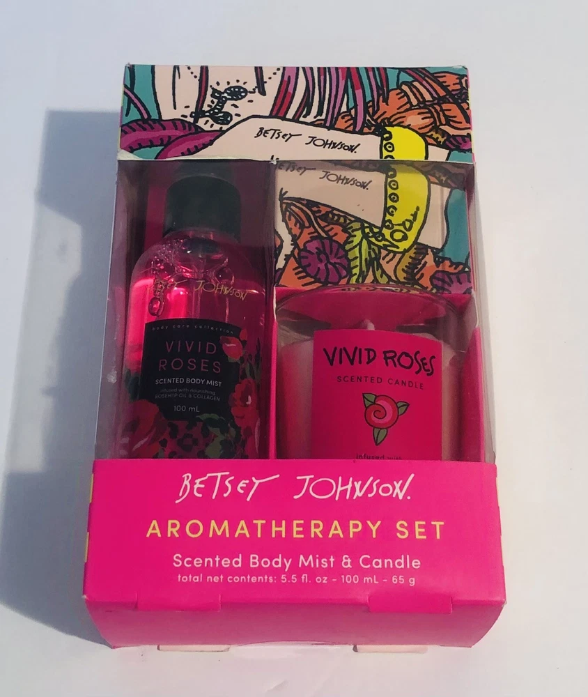 BETSEY JOHNSON Aromatherapy Set Scented Vivid Roses Body Mist & Candle. Condition is Brand New With Open Box. Comes with everything you see in the pictures only. Please view pictures to evaluate for yourself. Shipped via USPS Ground Advantage.