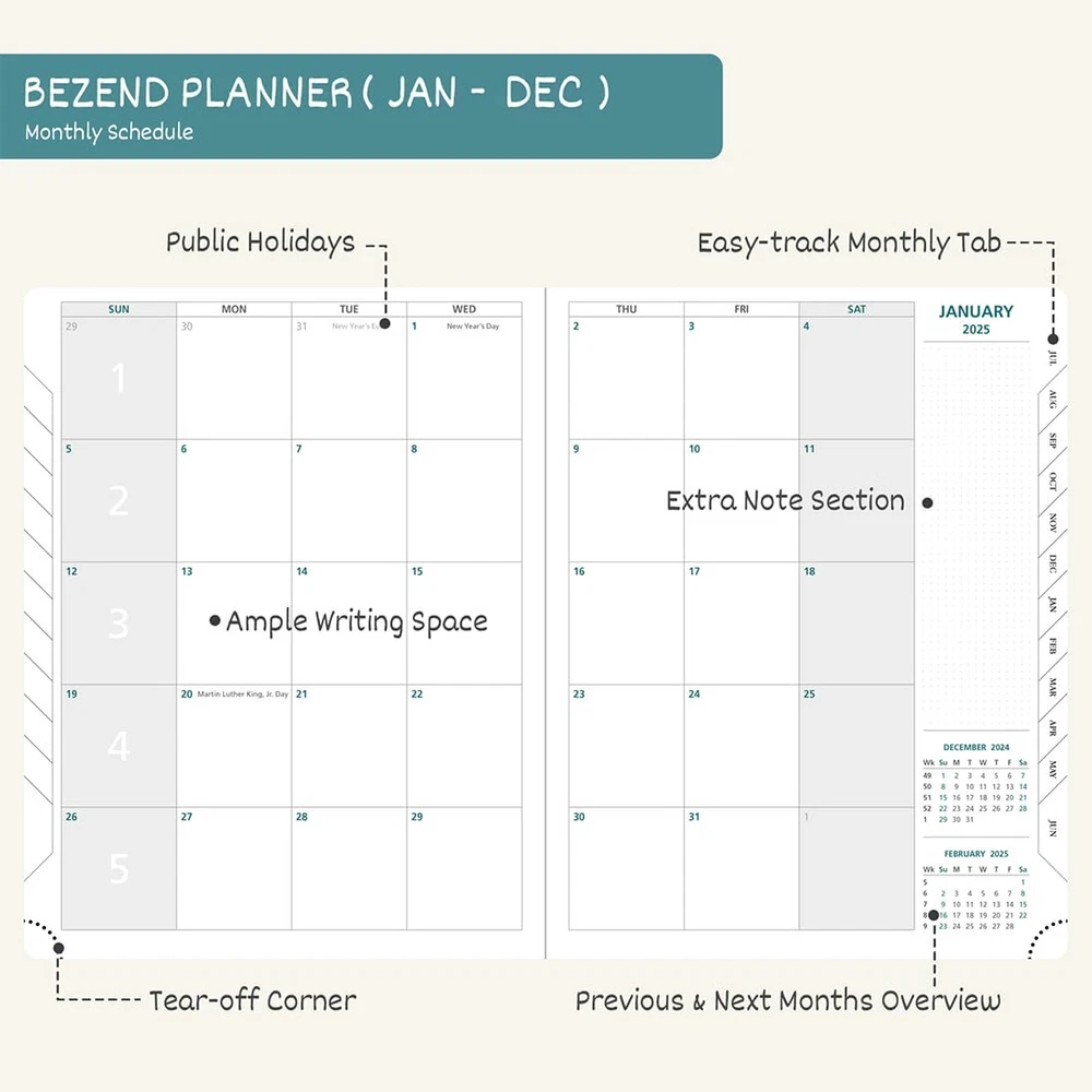BEZEND 2025 Weekly Planner & Notebook Hardcover - Large Size 8.5" x 11" - Agenda 2025 Calendar Planner with Monthly Tab, 120 GSM Thick Paper, Pen Holder, Storage Pocket (Pink) BEZEND Planner 2025, 8.5" x 11" Weekly Notebook Calender-120 GSM Thick Paper-12 Months (Jan - Dec 25) Daily Weekly and Monthly Appointment Book with Tabs, Inner Pocket, Hard Cover [Pink] COVERING JAN-DEC 2025 - In the upcoming year 2025, our 12 months weekly/monthly/yearly planner is all about setting you up to succeed at school and in life with a better grasp on time management WEEKLY / MONTHLY PLANNING – Double-page monthly spread with previous and next month reference allows long-term planning. One-page weekly section then displayed with a dotted page helps with more detailed and personalized planning. ENHANCED ORGANIZATION - Public holidays and multiple dotted note pages tailored for your scheduling needs and free writing. UNIQUE DESIGN - 2 Ribbon Markers | Elastic Closure Strap | Inner Pocket | Easy-track Perforated Corners | Pen Holder | Public Holidays | Dotted Note Pages RELIABLE QUALITY - Our exquisite large-size planner measures 8.5 x 11 inch. Durable high-quality hardcover and 120 g/m² paper enable constant use. A lovely gift for all the planners out there. Shipping from the USA All of our products are shipped from the USA, ensuring quick delivery to your destination. Payment We offer the following payment methods: PayPal, credit card, bank transfer, and eBay's secure payment system. Free Shipping & Free Returns Shipping within the USA is FREE. Additionally, any return is absolutely free for you. Risk-Free Purchase You have the option to return an item within 30 days without any justification. We cover the return shipping costs! Fast Shipping We ship immediately upon receipt of payment. Generally, the package is delivered within 2-3 days in the USA. If it takes longer, we will contact you. Quality and Costs Made in Europe, USA, China No customs fees or additional charges Total satisfaction guarantee Invoice with declared VAT available upon request in .pdf format Feedback Your feedback is very important to us. After you pay for your purchase, you will automatically receive positive feedback from us.