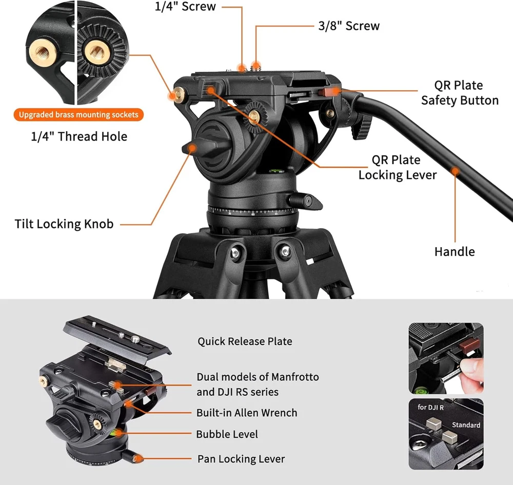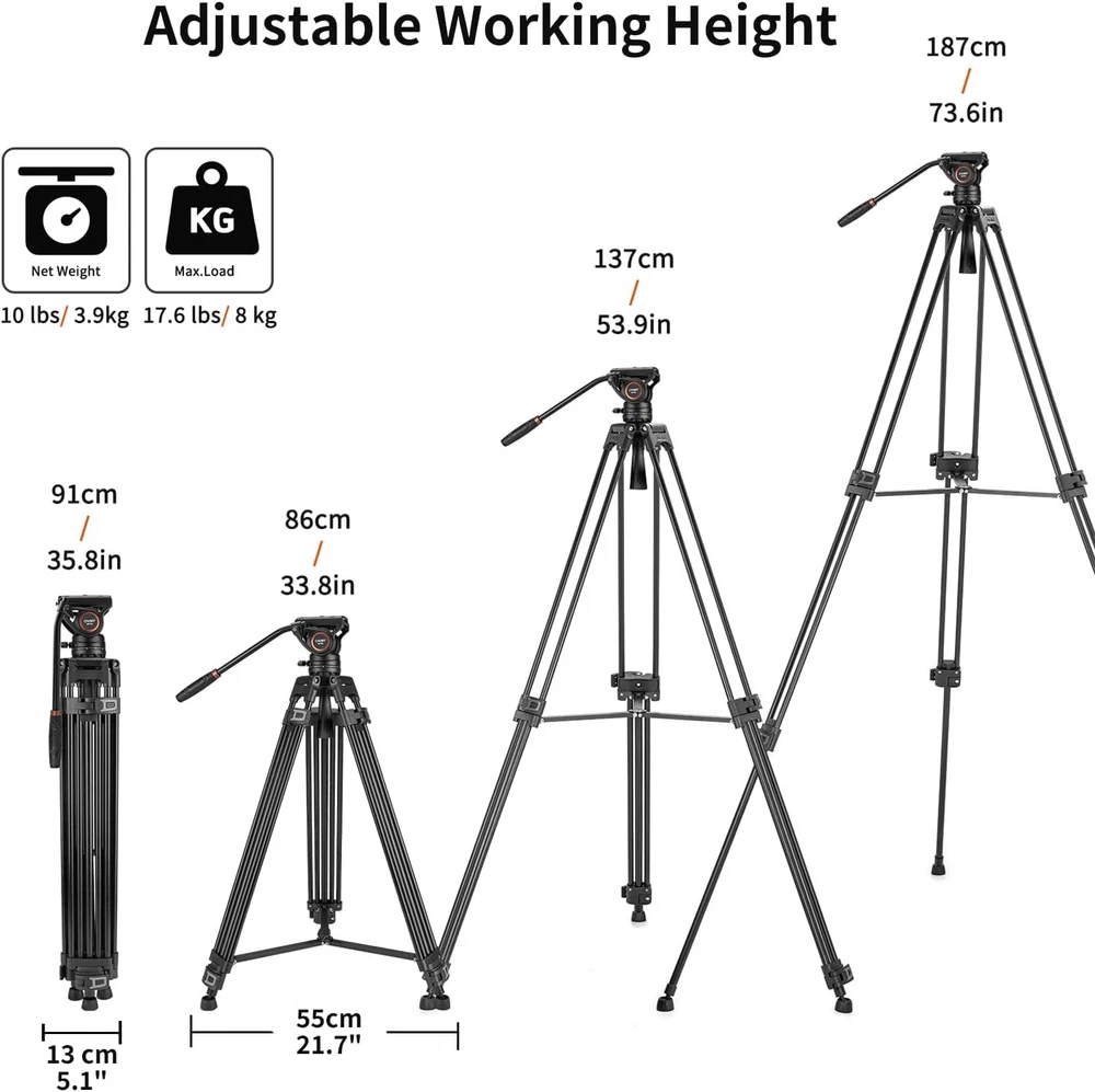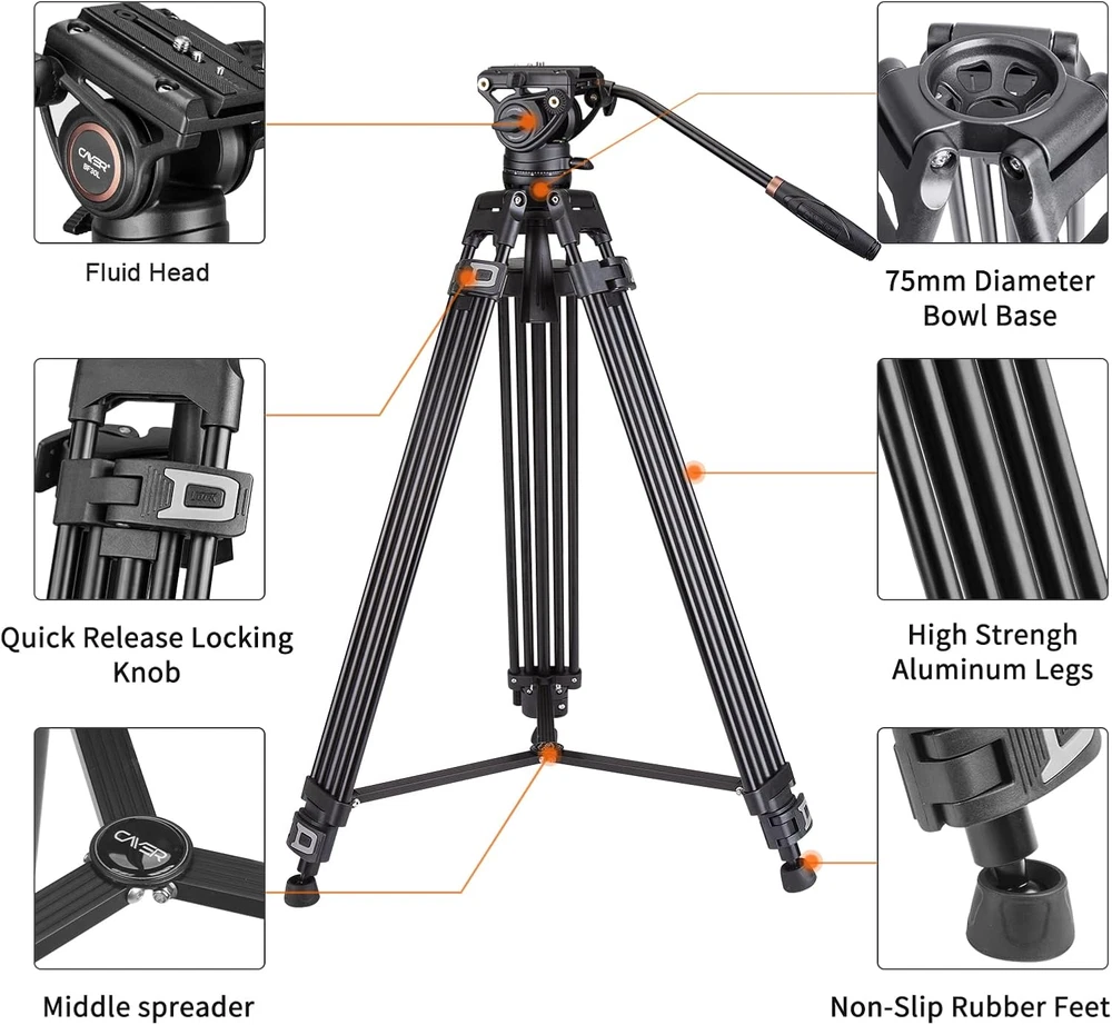 Store New Arrivals Add to Favorite View Feedback Contact BF30L Video Tripod with Fluid Head, 73" Heavy Duty Tripod with 360 Degree Fluid Head and Quick Release Plate for DSLR, Camcorder, Cameras, 17.6 Lbs Playload Description Item model number BF30L Color Black Product Dimensions 7.09 x 7.07 x 37.01 inches Material Aluminum Compatible Devices Camcorders, Cameras Maximum Height 187 Centimeters Item Weight 5 Kilograms Model Name BF30L Tripod Head Type Pan Heads Special Feature Adjustable Weight Limit 17.6 Pounds Professional Video Tripod: This video tripod system includes a 2-stage aluminum tripod with a 75 mm bowl and a fluid head with a 17.6 lb payload, perfect for supporting DSLRs, mirrorless cameras, and smaller video cameras Adjustable Shooting Angle: The video fluid head offers 360° pan rotation, and tilt is adjustable from -70° to 90°. It includes a removable pan handle and features two mounting rosettes for left or right-handed operation Quick Disassembly: With the dual-mode quick release plate mount, it allows you to use the included standard QR plates or the original RS3, RS3 Pro, or RS 2 QR plate(not included); featuring a built-in Allen Wrench for quick disassembly, the side-pressed lock system allows the plate to click into the head from above, instead of needing to be aligned and slid in from the back Wide Compatibility: The tripod with fluid head kit includes two standard QR plates with both 1/4" and 3/8" camera screws, making it compatible with most cameras. The fluid head features a built in 1/4" accessory socket for a variety of accessories, articulating arms or brackets. With the 75mm flat base, it works most monopods, sliders and tripods via its 3/8" threaded interface Adjustable Height & Easy to Carry: Oversized flip locks along the 2-stage tripod legs allow for quick and easy height adjustments from 33.8" to 73.6", folds to 35.8" long for easy transport and storage Product Description Cayer BF30L Video Tripod with Fluid Head The Cayer BF30L Camera Tripod Kit combines the professional K6 fluid head with aluminum heavy duty tripod legs and mid-level spreader, working with cameras weighing up to 17.6 lb, creating an effective combination of stability and smooth, precise control, ideal for both camcorders and DSLR cameras. Weighing 2 pounds, the two-way fluid head also features drop-in quick release design, a pan handle, and an integrated bubble level. The two-stage tripod features a 75mm bowl and the legs are individually adjustable and feature a mid-level spreader for stability on uneven ground. This system offers a height range of 33.8 to 73.6" and folds down to 35.8" for storage inside the included padded carrying case. - K6 Video Head Offers 360° panning, tilt angle adjustments from +90° to -70° Provides fixed fluid drag in both the pan and tilt axes A built in 1/4" accessory socket for a variety of accessories BF30L Tripod Kit Specs Load Capacity: 17.6 lb Ball Base: 75 mm Leg Construction: Aluminum Leg Sections: 3 Minimum Height: 33.8" / 86 cm Maximum Height: 73.6" / 187 cm Folded Length: 35.8" / 91 cm Weight: 8.6 lb / 3.9 kg Packing List: 1 x BF30L Video Tripod Leg 1 x K6 Fluid Head with 75mm flat base 2 x Sliding QR Plates 1 x Carrying Bag Drop-in quick release design allows the camera to quickly click into the head from above. Simply press the safety button to release the plate from the fluid head. Locked by 75mm ball adapter with 3/8"-16 stud, allows you to quickly level the head without having to readjust the legs. Oversized fleg locks along the tripod legs allow for quick and easy height adjustments. The mid-spreader helps prevent instability that a ground-level spreader can introduce when working on uneven surfaces. ABOUT US We offer the best prices around on high quality products. Our E-store includes media such as books, movies, music and games while offering electronics, toys, sporting apparel, clothing, tools, general home, garden items and more. SHIPPING We are always working hard to ensure your package arrives as soon as possible. Please understand that some factors like weather, high postal traffic, and the performance of shipping companies are outside of our control. We offer free shipping to the lower 48 states and ship within 2 business days of payment, usually sooner. We do not accept P.O. Boxes. Please provide a physical address. For shipping outside of the continental USA, we only use eBay's Global Shipping Program.The item is shipped to KY and then sent to the rest of the world. International customers are responsible for all duties and taxes. Continue to check out in order to calculate costs for shipping the item to your country. Messages regarding eBay's Global Shipping Program MUST be directed at eBay EXCLUSIVELY. RETURNS We offer a 30-Day Return Policy on items which you are not completely satisfied with. You have the option for a full-refund or an exchange of the item. No returns are available on items shipped outside of the USA. PAYMENT We accept PayPal. CONTACT US This page content is yet to come Please ad us to your favorite seller and visit again later Thank You CUSTOMER SATISFACTION We try our very best to make sure every customer is completely satisfied. If there's a problem, message us! We're happy to help. WE ACCEPT Copyright © 2021 AutoDS. | All Rights Reserved
