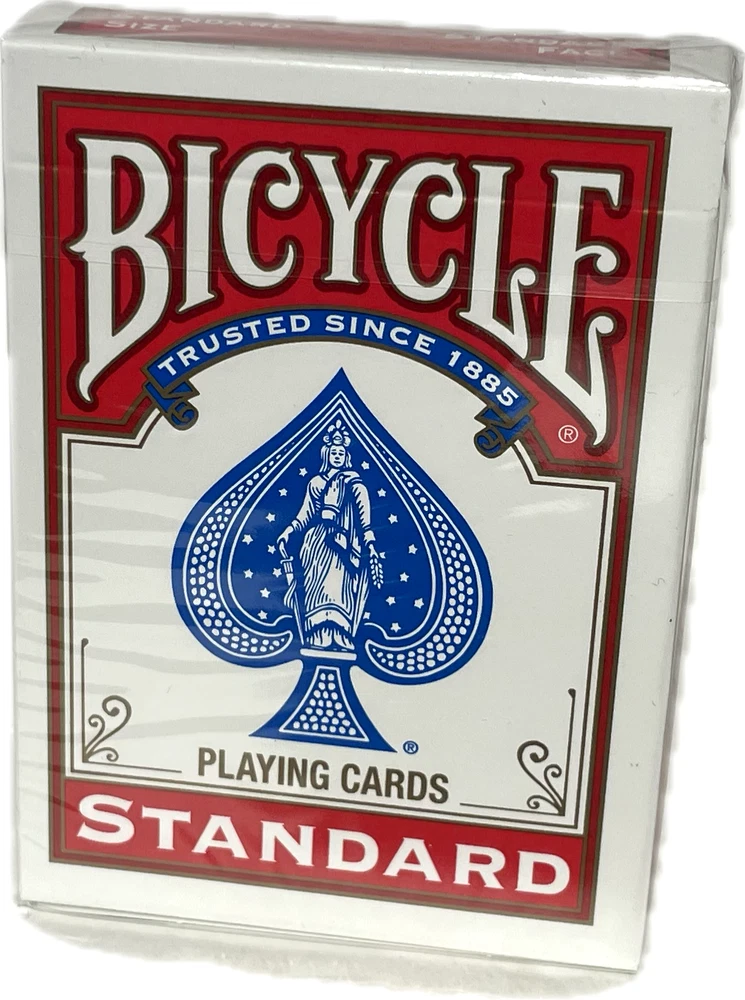New Bicycle Double Faced Poker Deck! BEST PRICE ON EBAY! These double faced poker size decks are great for making up your own effects. SALE IS FOR ONE DECK. Double Face Gaff Deck Bicycle Factory Sealed Poker Size A regular bicycle deck with assorted face side on both sides. Most cards have different card values on each side and some have the same card value on both sides of the card and some are blank on one side. *This deck is factory sealed from the US Playing Card Company * 56 Card Deck * Box color varies WOW FREE SHIPPING! Robb. D - 5