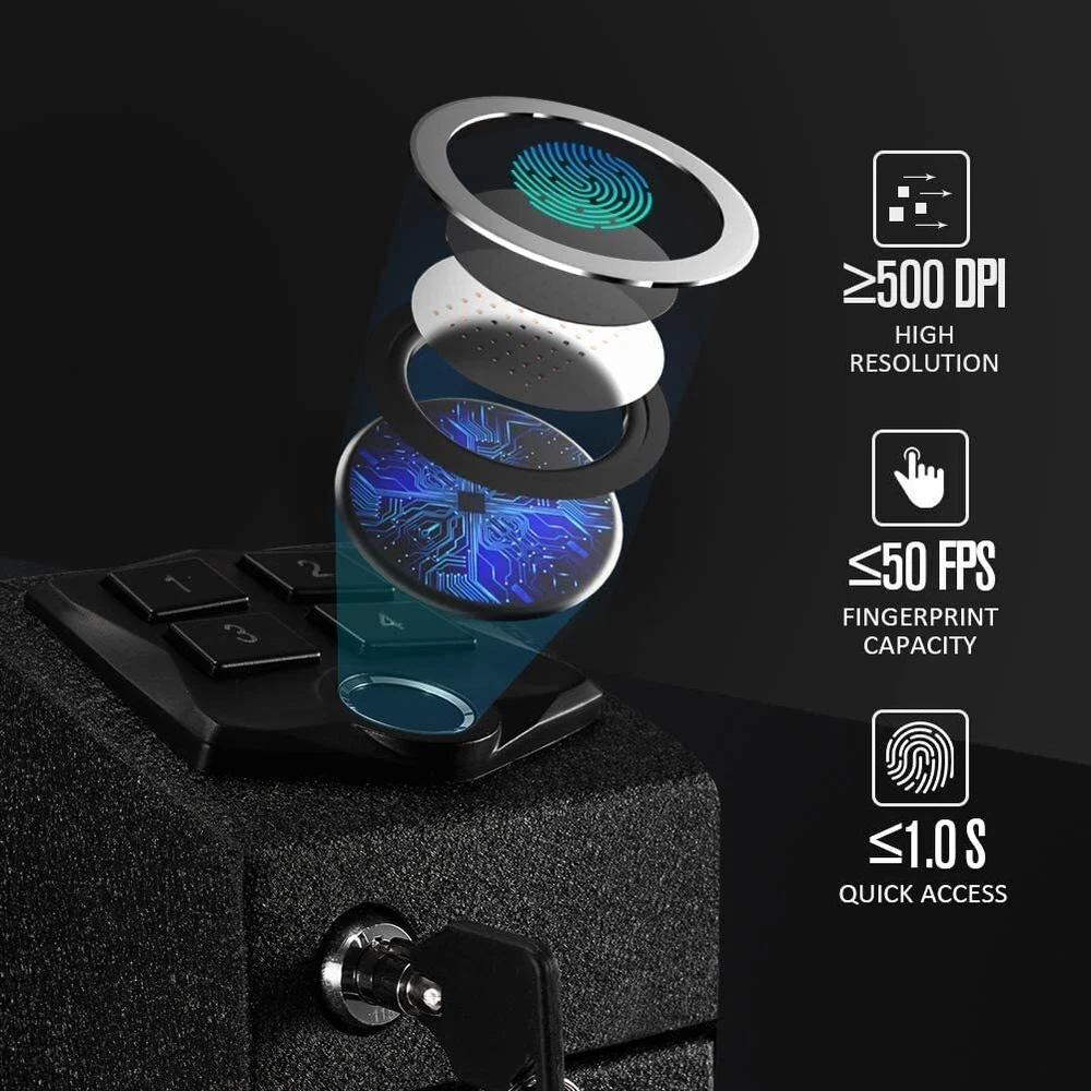 Biometric Handgun Safe California DOJ Certified. RPNB U.S. Ships FREE & FAST 6 Days A Week More Safes, Gunsmith, Optics In Store Free Shipping For 48 State Continental U.S. Only No Shipping Puerto Rico Guam, Etc 10% CANCELLATION FEE NO EXCEPTIONS Quick Access: 500 DPI Semiconductor Biometric Fingerprint Sensor in any gun safe captures high-resolution fingerprint images with excellent match speed of less than 1 second for extra-fast entry. Handgun Safe: If you have young children who don’t understand the potential danger of firearms, it’s essential that you keep them safely stored. Placing them in this Pistol Safe is a responsible way to properly secure your small firearms at home or on the go. Desk-Mounted Design: Slim Vertical Design stores great under a desk or nightstand, discreetly on a bookshelf, or inconspicuously in a vehicle. For added convenience, mountable from right, left, or top side, depending on desired preference. Rough & Rugged: Expertly crafted using sturdy steel construction, the RPNB handgun safe will provide long-lasting strength and use for years to come. It also features a prevents corrosion, black finish for a durable, professional appearance, making it easy to incorporate into any interior space. MORE INSIDE: HERE