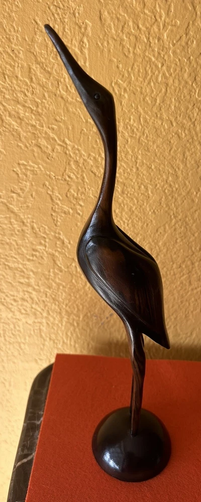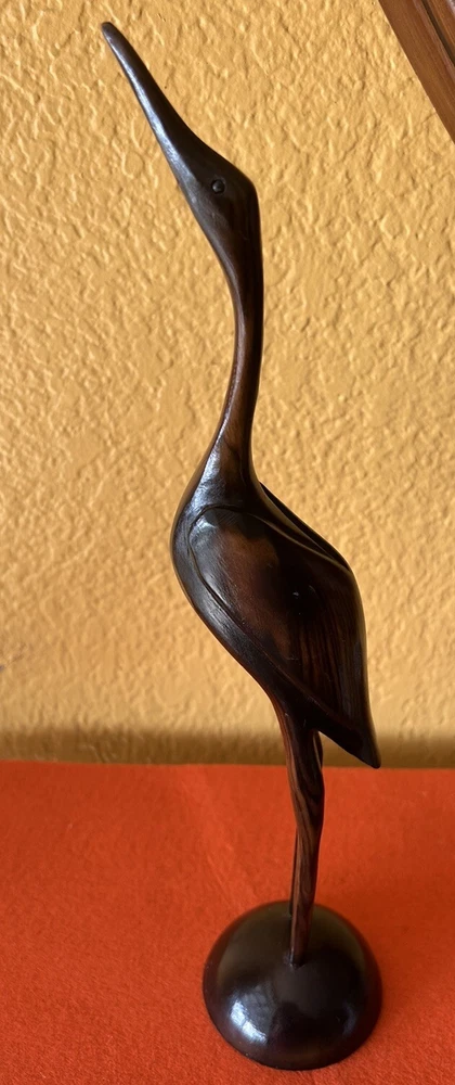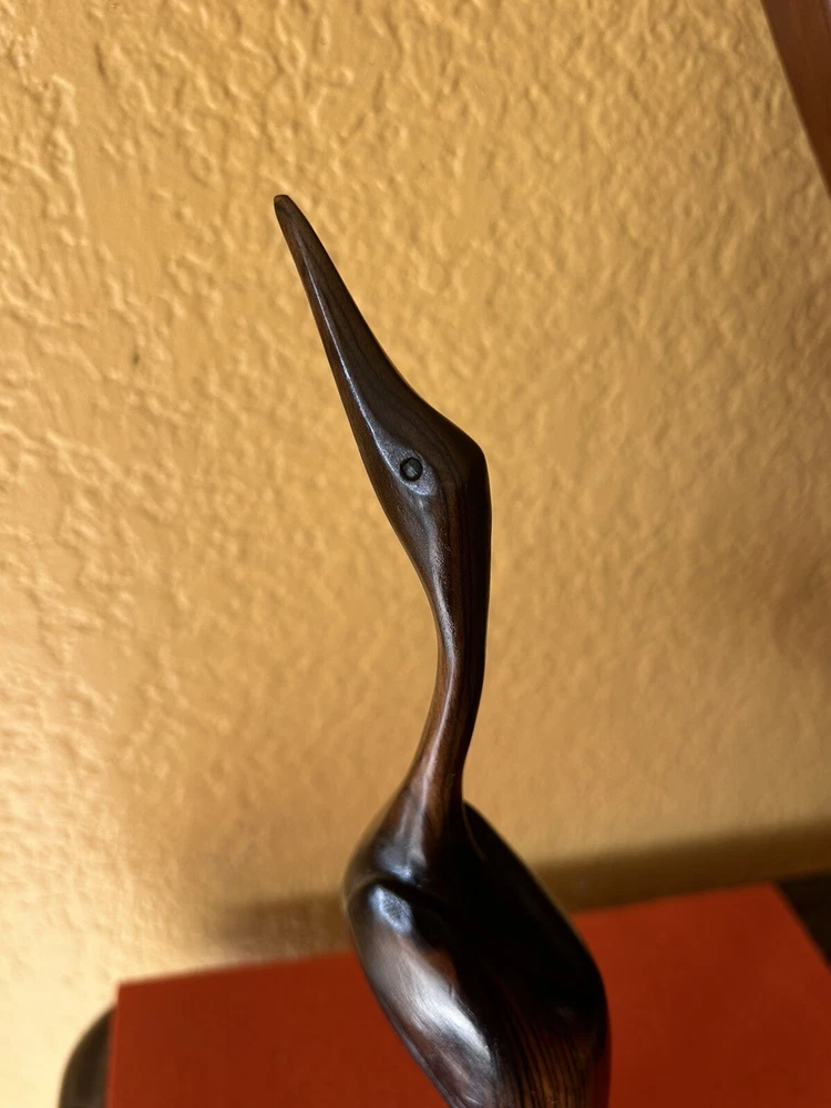 BIRD STATUE FIGURINE HAND CARVED WOOD 12 1/2 “Tall Pre owned but in good condition Please see pictures for measurements and details No mark