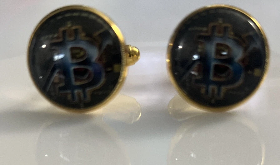 BITCOIN CUFFLINKS Cryptocurrency Gold Plated.