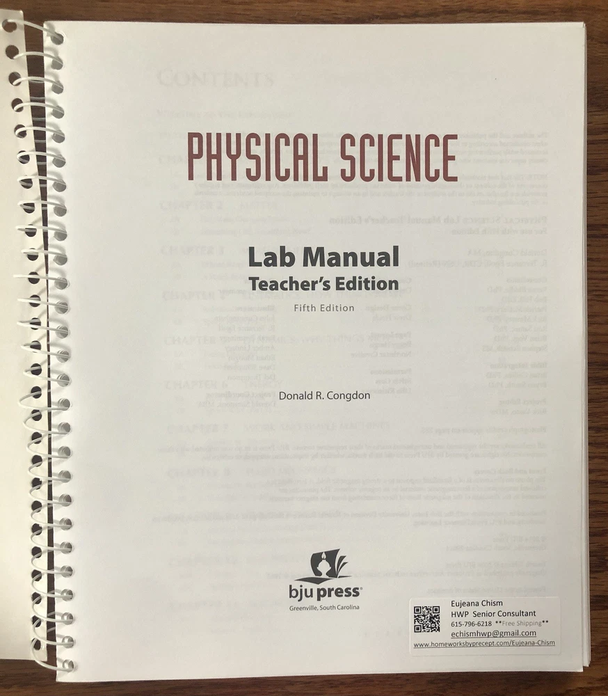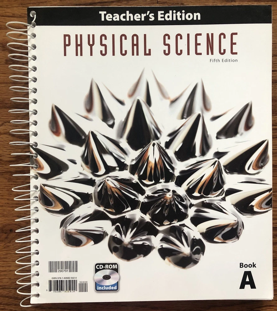 -BJU Physical Science 5th Edition Teacher Edition Books A and B and Lab Key -CD-ROM is included with book A, but is has NOT been tested -These are used books in good condition: -The pages of all books appear clean and unmarked, aside from minimal signs of wear -The covers of all books show some signs of wear -See pictures for details -If you decide to purchase these books, feel free to leave feedback or a review! We are a small business and any feedback helps -Be sure to check out our other listings for more used homeschool books!