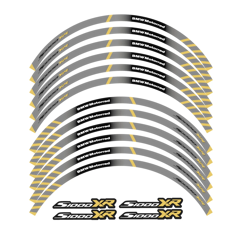 BMW S1000XR Motorcycle Wheel Decals Rim Stickers Stripes S1000 XR Gold Grey