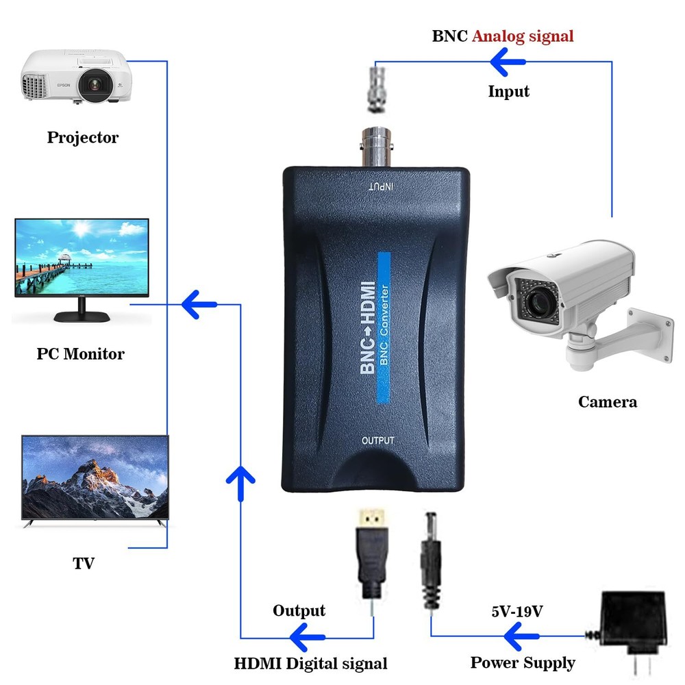 This BNC to HDMI adapter works flawlessly for my analog CCTV cameras! Setup was simple—just connect power and BNC first, then HDMI to the monitor. The video quality is crisp, with no lag, perfect for surveillance feeds. Make sure you follow the connection order for it to work. Great value for converting old coax cameras to modern displays. Just note it won’t work with digital signals or TV antennas, but for analog CVBS, it’s a solid little converter. Very happy with the purchase!