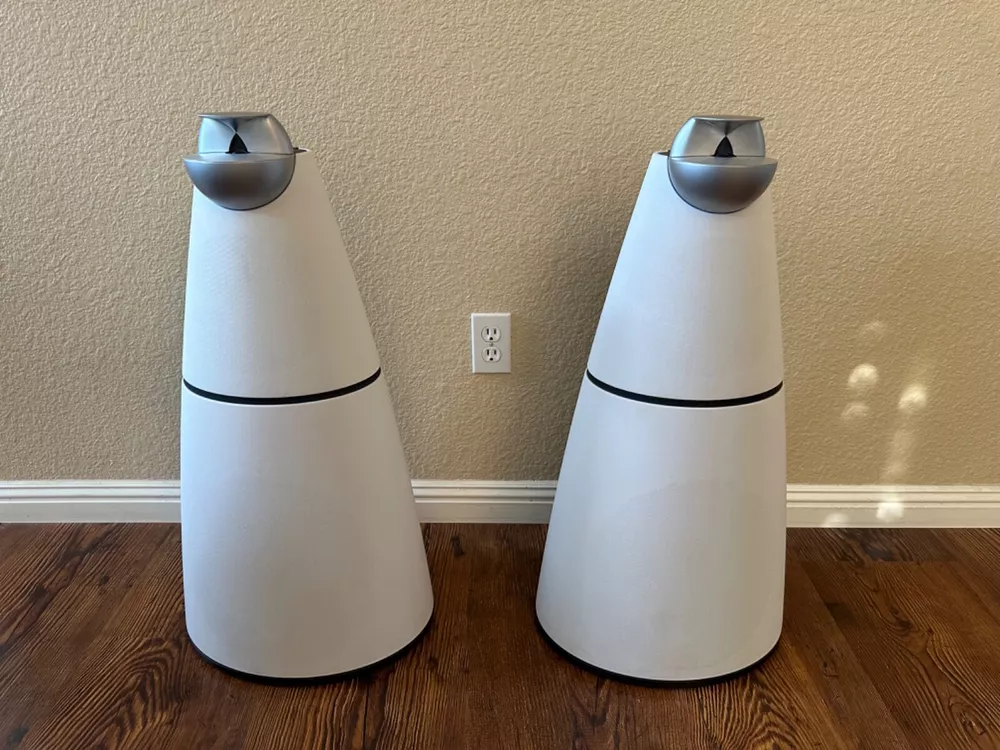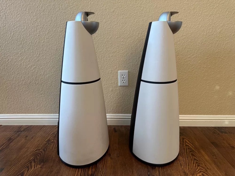 B&O Bang Olufsen Beolab 9 Active Speakers In excellent condition, work flawlessly Fabric grills have a few tiny holes but nothing major Included: power cord & power link cables