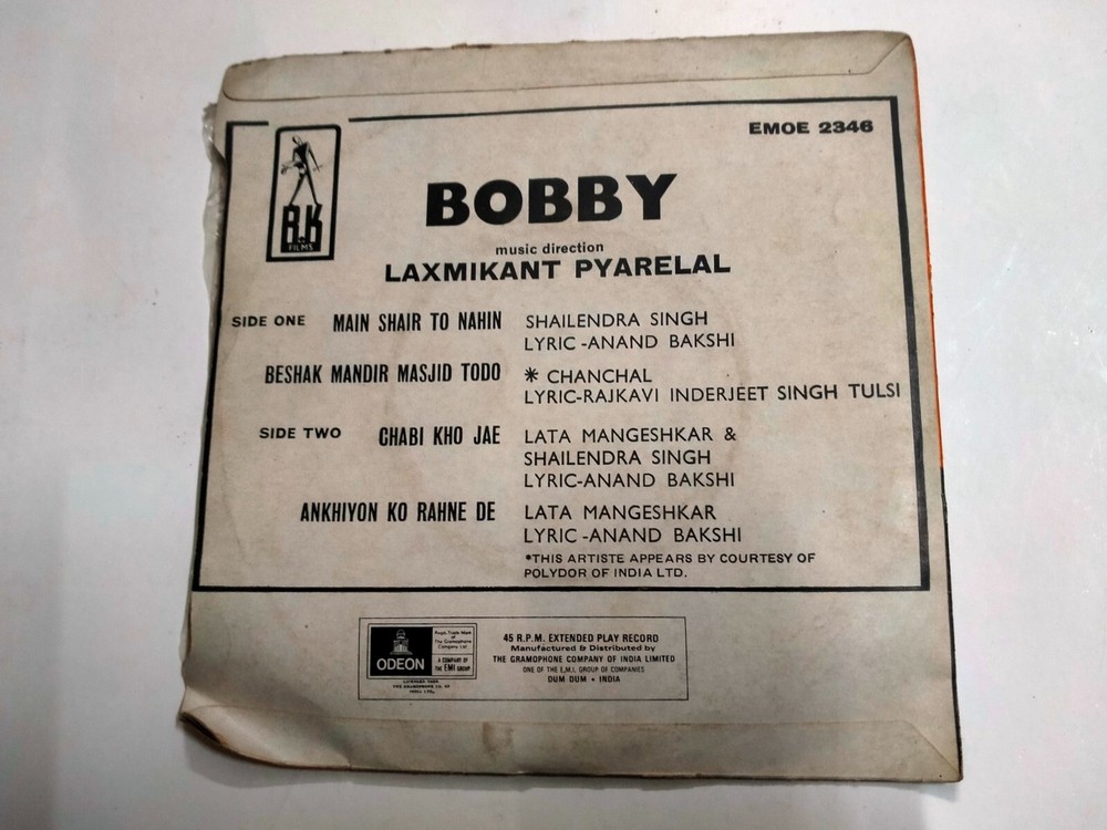 BOBBY LAXMIKANT PYARELAL EMOE 2346 RARE EP RECORD VINYL BOLLYWOOD HINDI 1973 EX
