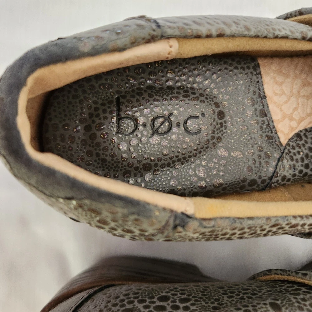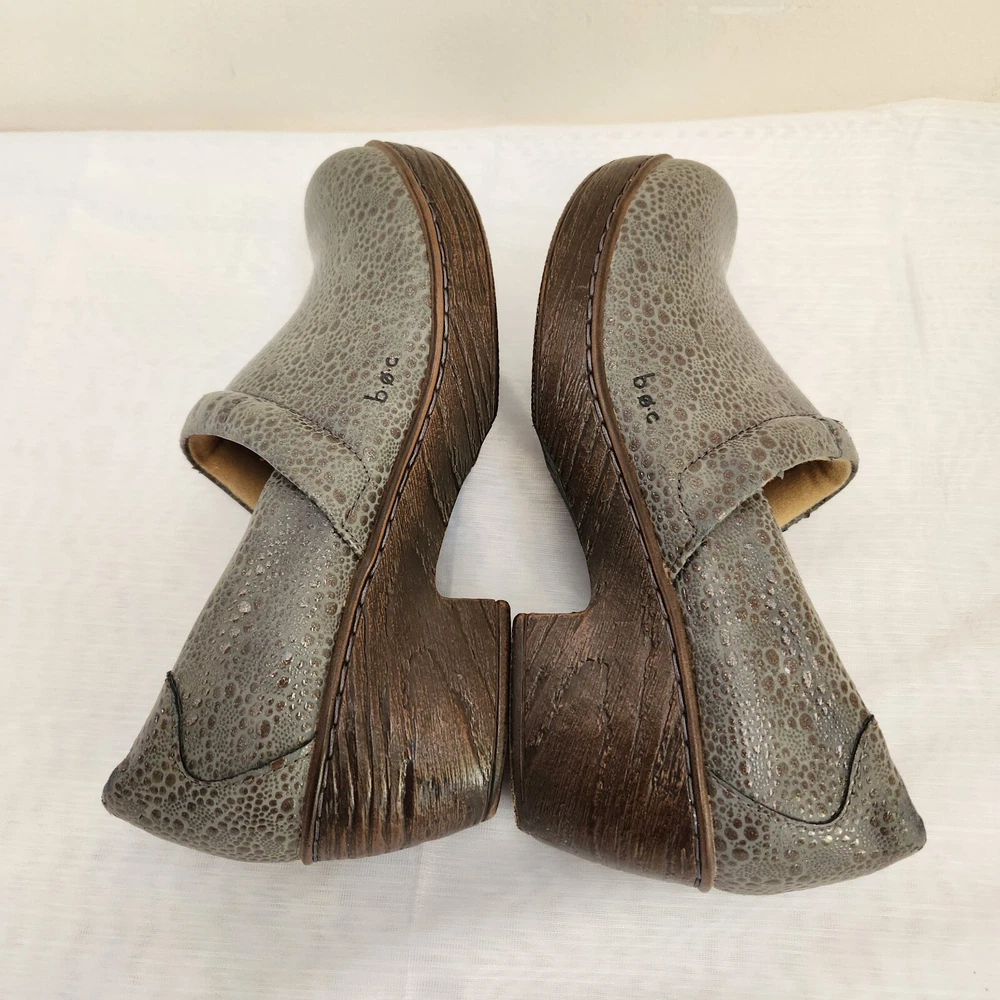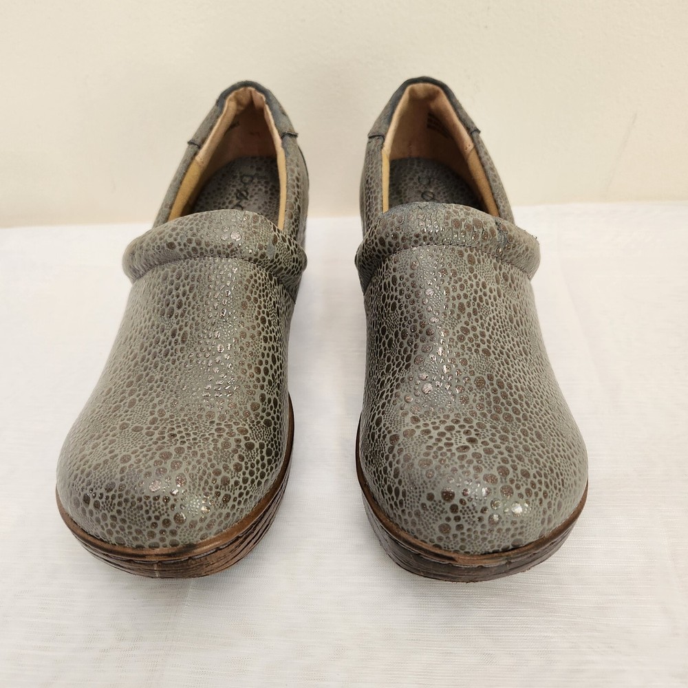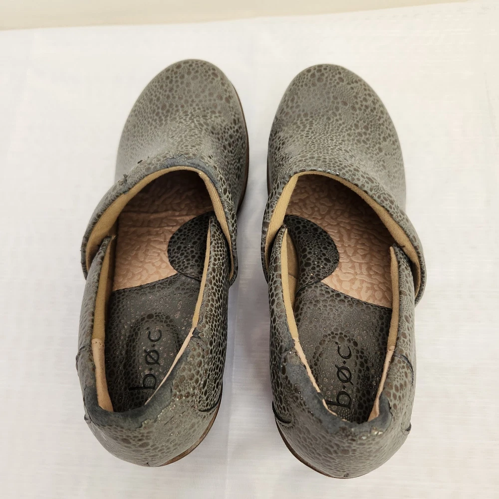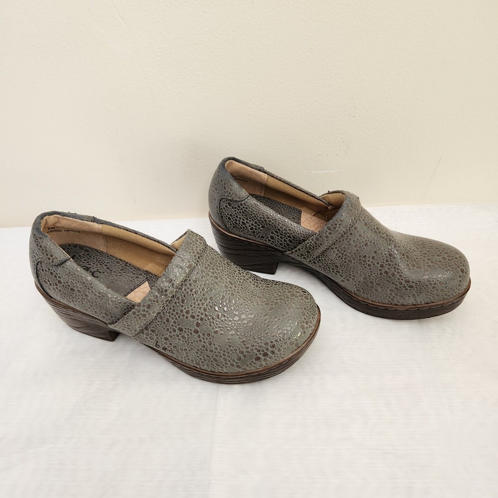 BOC Born Concept Clog Womens 8 Gray Peggy Embossed Pebble Slip On Shoe Boho Chic - Pre-Owned in Very Good Condition - Measurements Heel Height - 2 1/4 in - Returns acceptable within 30 days of purchase unworn, in original condition - Check out my E-bay Store. Lots of Choices Available. Reduced shipping for 2 or more items. Let me know before you pay so I can send you an invoice to discount the shipping