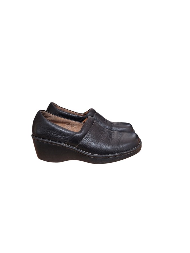 BOC Born Women's Black Leather ,Clog Mules In Good Condition. Round Toe , Cushioned, Slip On Same Day Shipping / Next Day